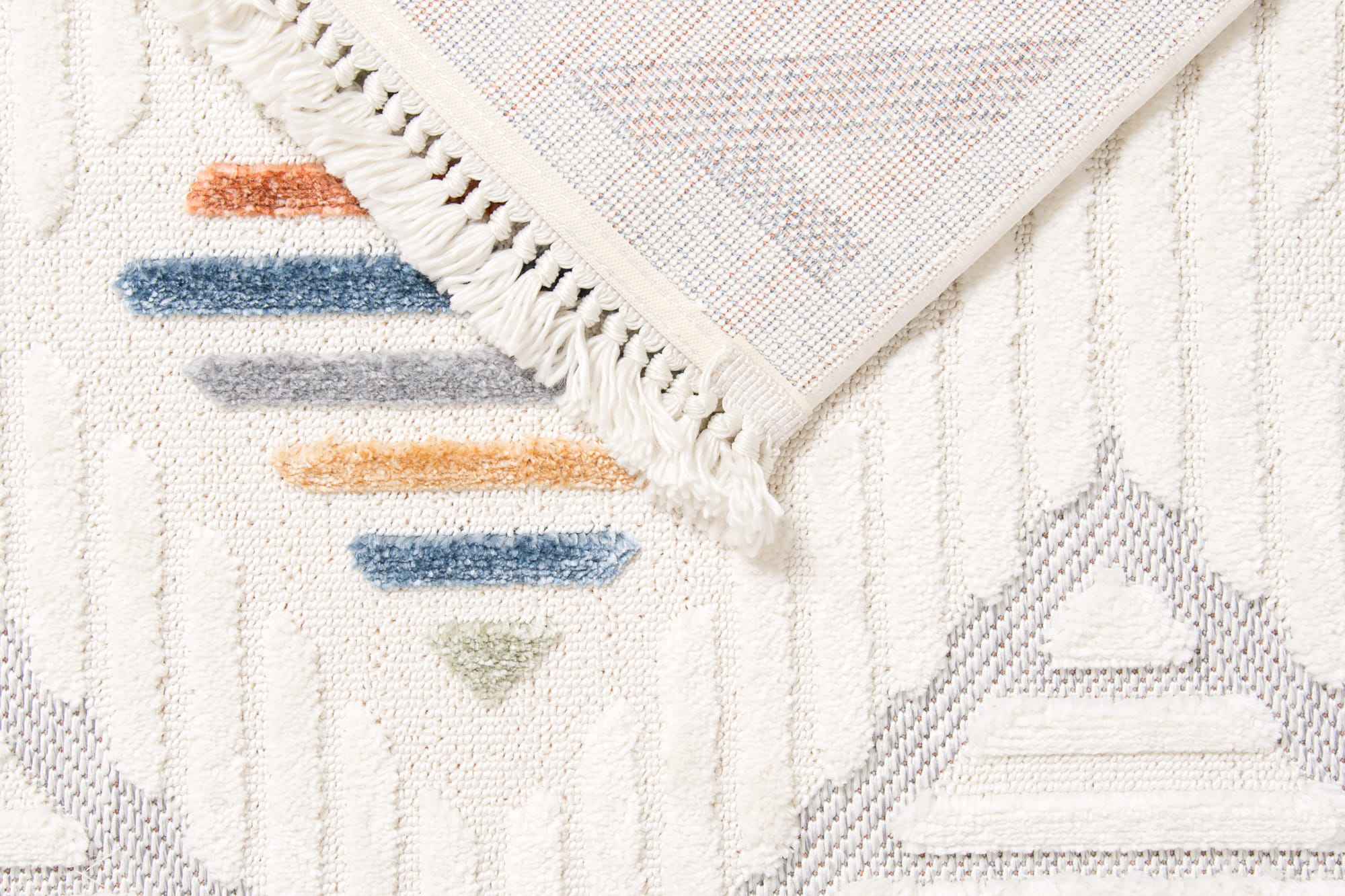 Dywany Desire wpisują się w linię kolekcji boho, o kremowej barwie i geometrycznych, trójwymiarowych wzorach, z wykończeniem frędzlami. Poliestrowe włókno sprawia, że są miłe w dotyku, dają komfort podczas chodzenia. Można stosować je na ogrzewanie podłogowe.