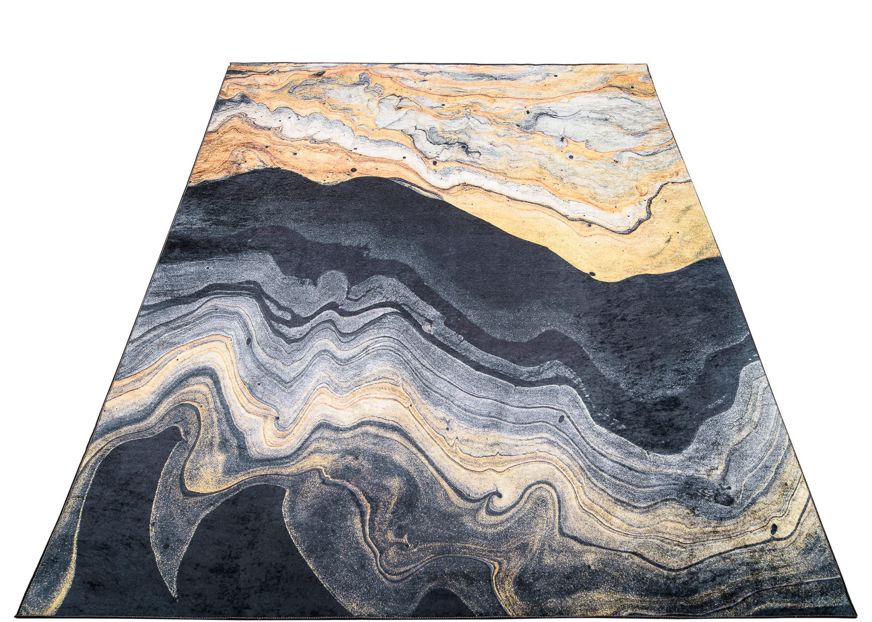 Dywan czarny ze złotą ramką 23020 Print Toscana