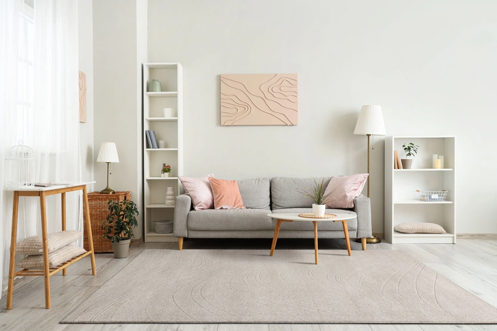 Dywan z subtelnym wzorem fal rozciągających się na całej powierzchni. Wykonany z wysokiej jakości przędzy polipropylenowej Heat Set Frise, gwarantuje trwałość, odporność na odkształcenia i łatwość w pielęgnacji.