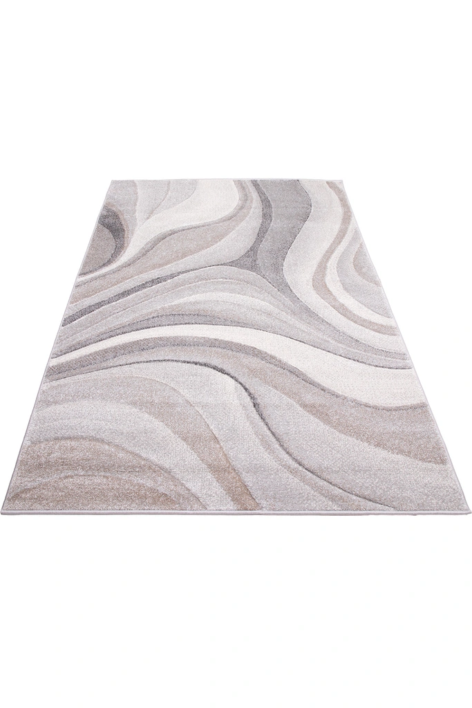 Stylowy dywan wykonany z trwałego włókna syntetycznego, idealny do współczesnych aranżacji i wnętrz. Geometryczny wzór w pastelowych, ziemistych odcieniach dodaje ciepła i nowoczesnego charakteru.