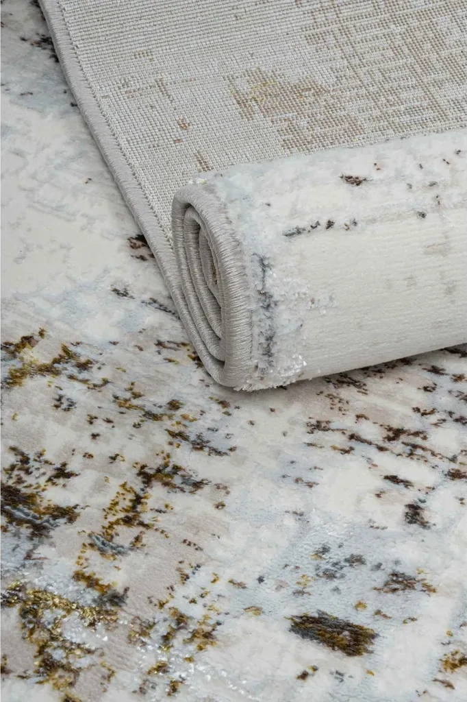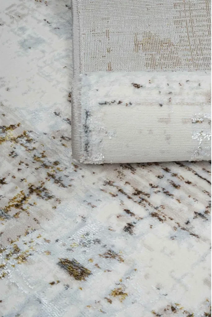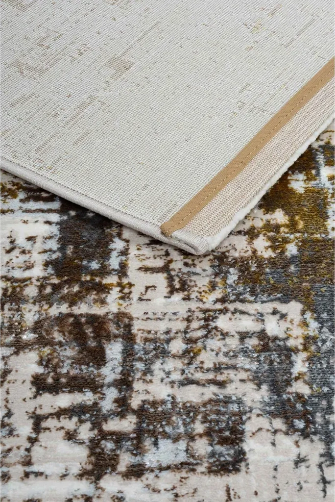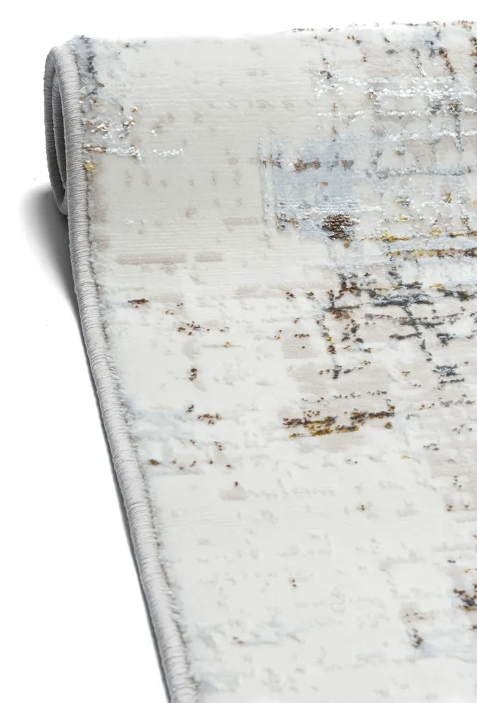Elegancki beżowy dywan z miękkim, błyszczącym runem z przecieranym, abstrakcyjnym wzorem. Trwały i łatwy w czyszczeniu, idealny do stylowych wnętrz.