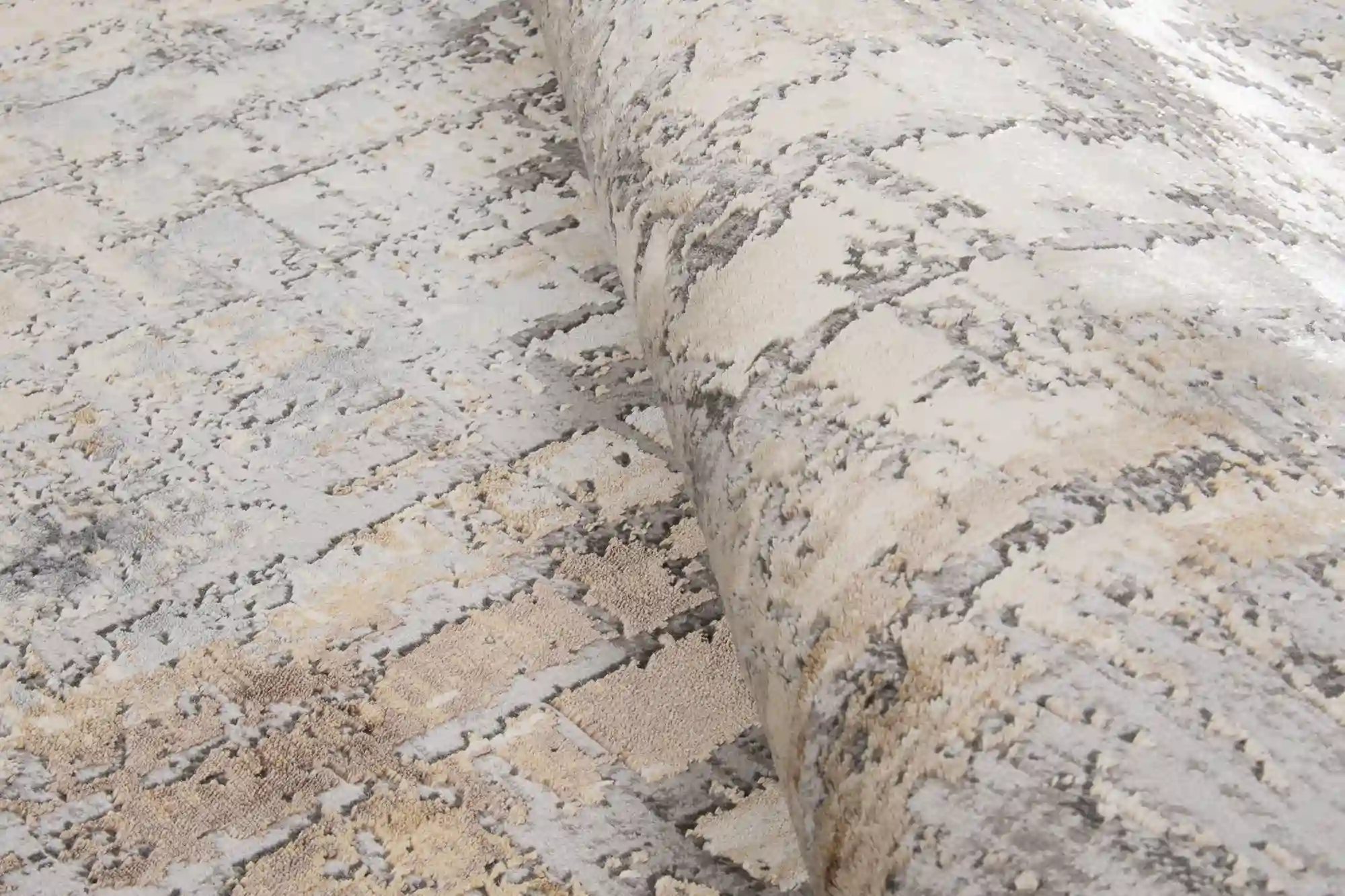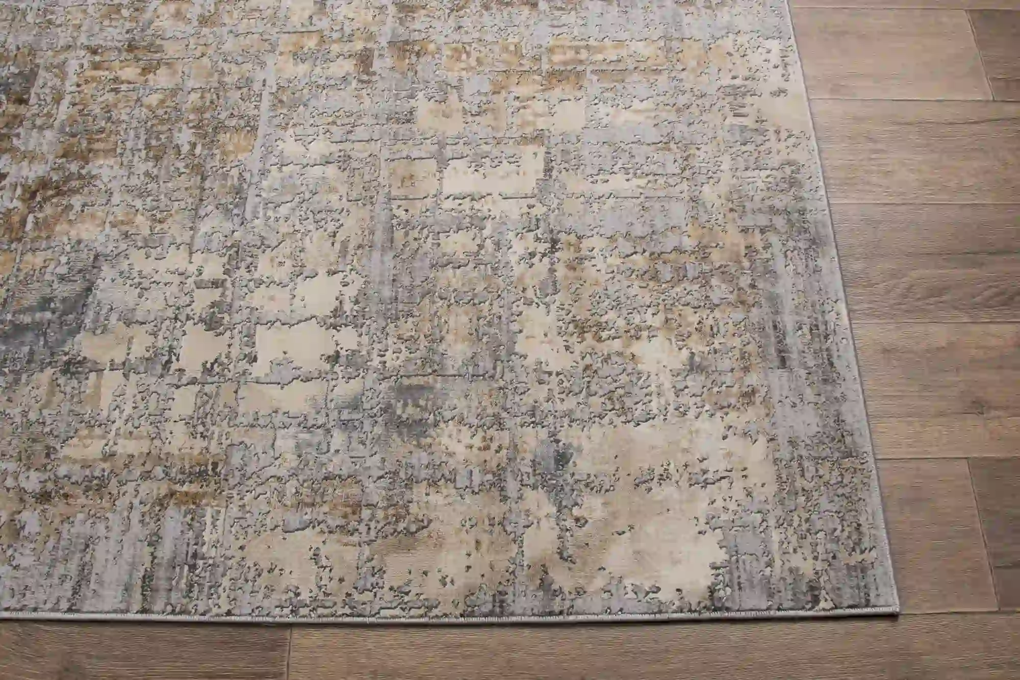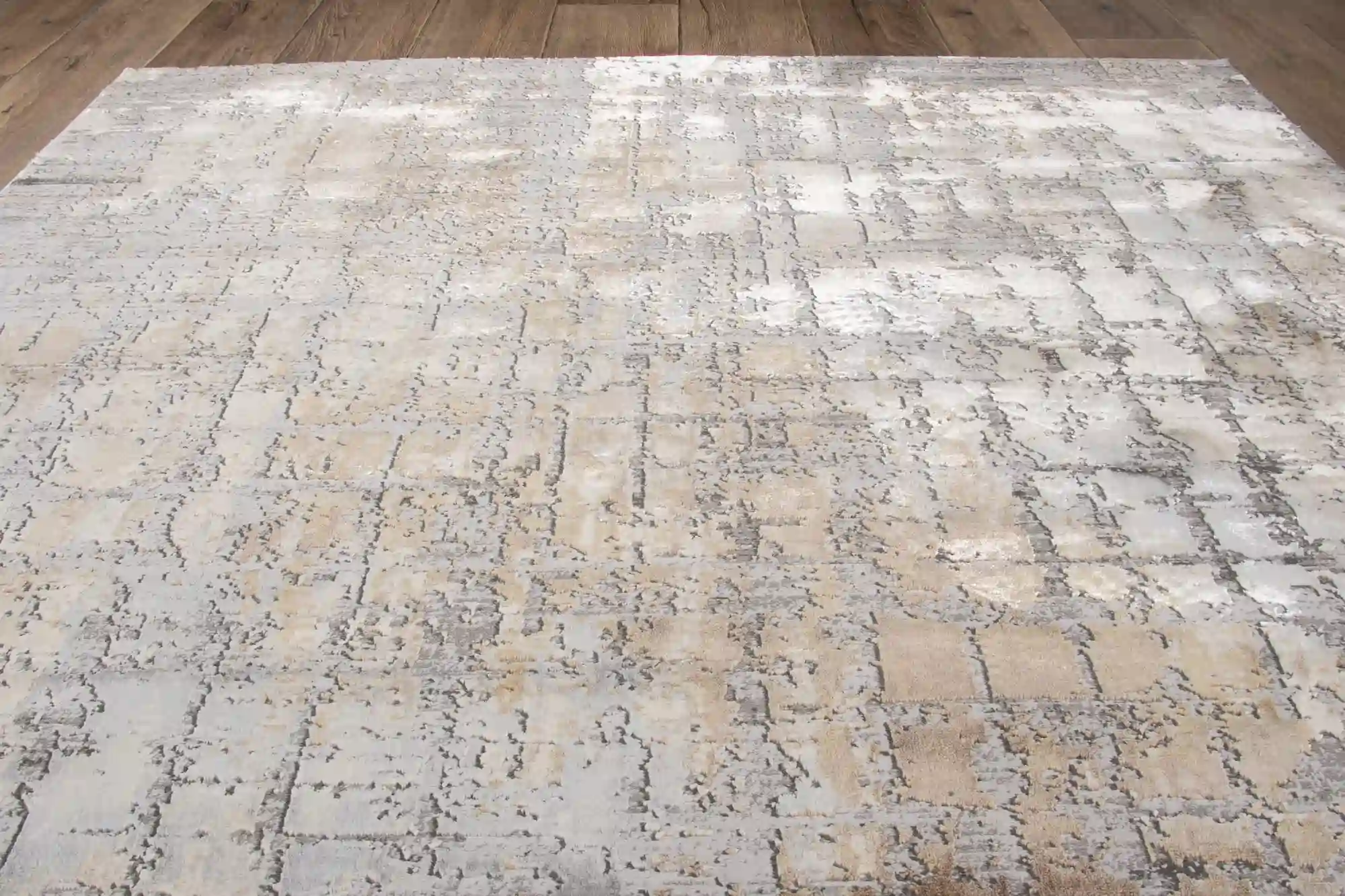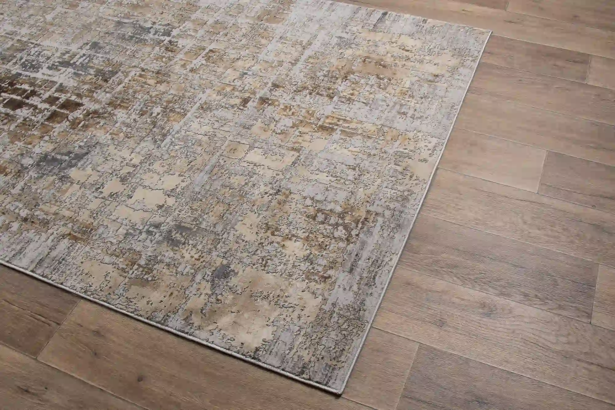 Stylowy dywan wykonany z miękkiej przędzy poliestrowej z delikatnym połyskiem. Przecierany deseń i runo o dwóch wysokościach tworzą efekt trójwymiarowości. Odporny na zabrudzenia i łatwy w czyszczeniu, idealny do nowoczesnych wnętrz.