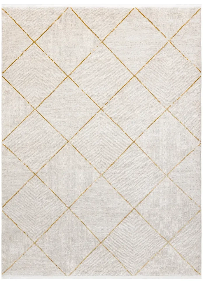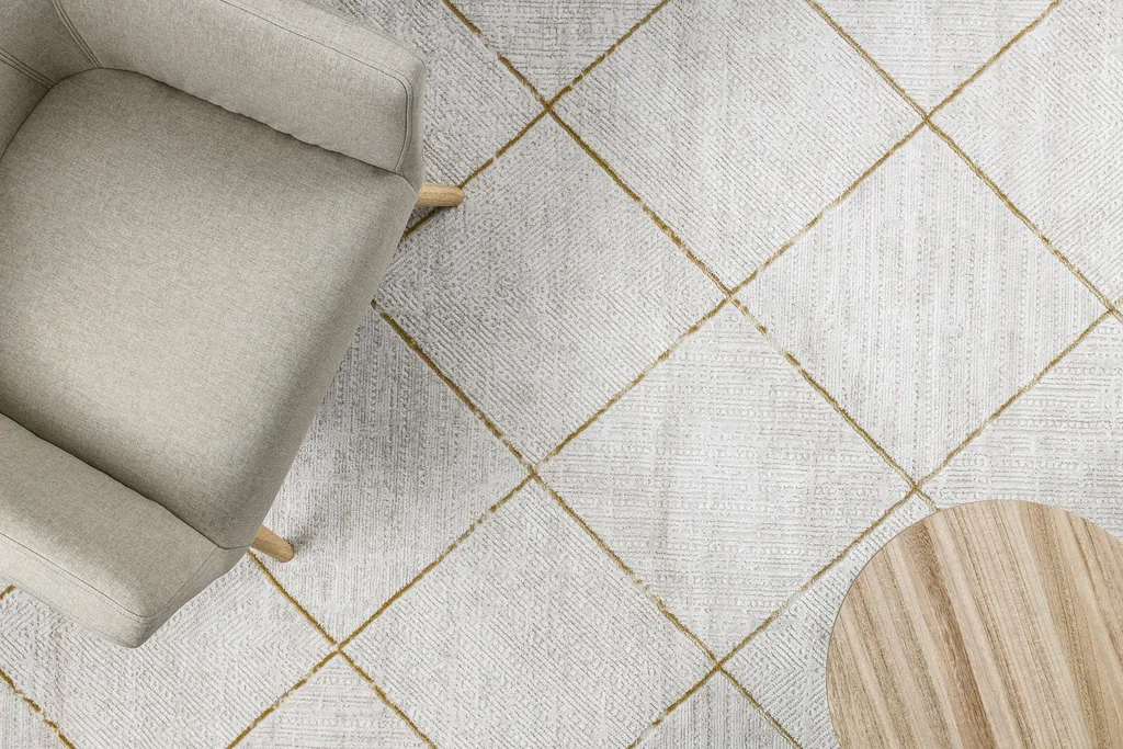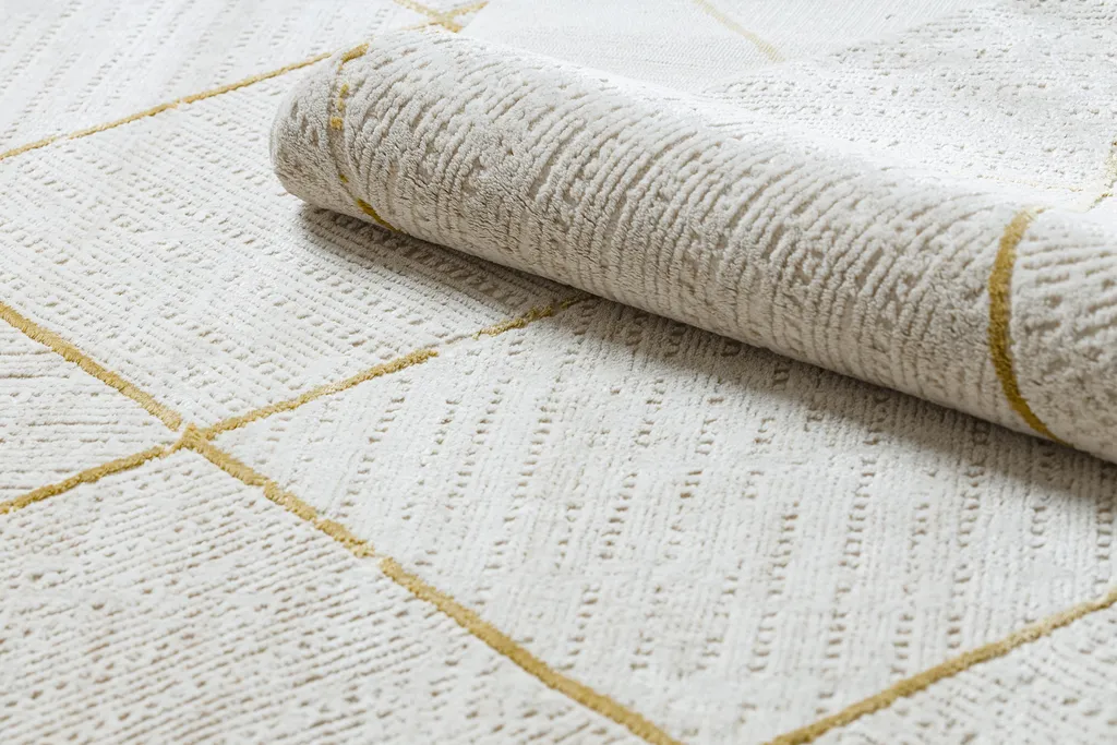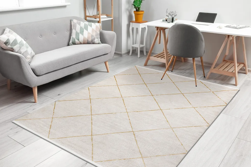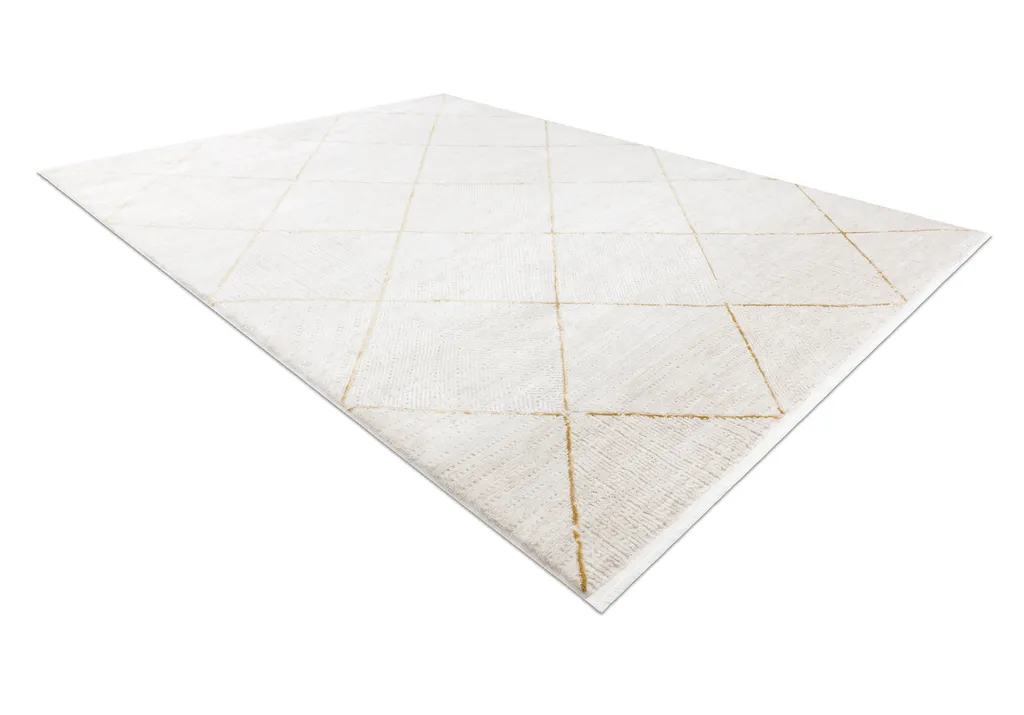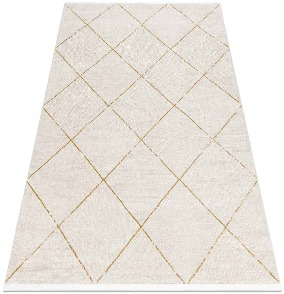 Kremowy dywan ze skośną złotą kratą Duke 51245