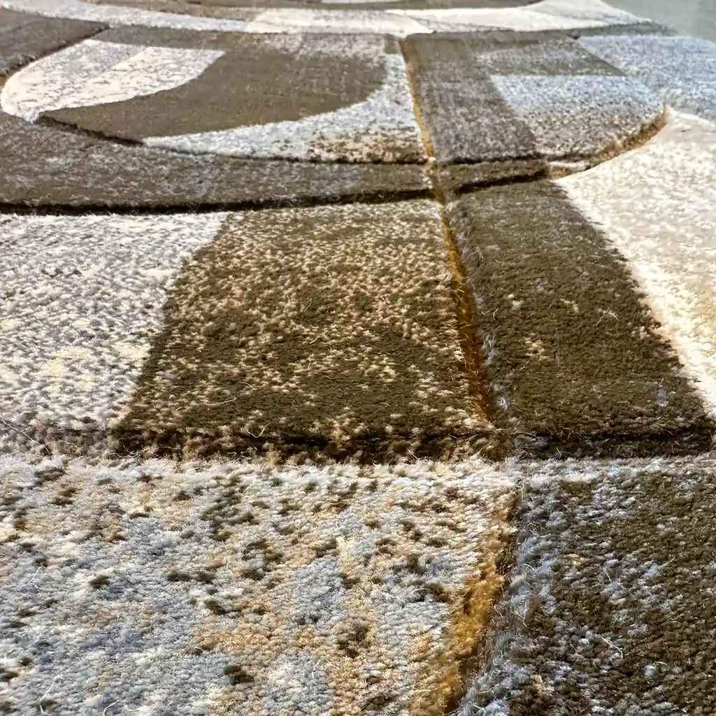 Dywan ozdobiony nowoczesnym, geometrycznym wzorem. Subtelny efekt trójwymiarowości został uzyskany dzięki precyzyjnemu wycinaniu runa (relief), co nadaje powierzchni głębi i wyjątkowego charakteru. Wykonany z wysokiej jakości włókien syntetycznych, łączy atrakcyjny design z trwałością.