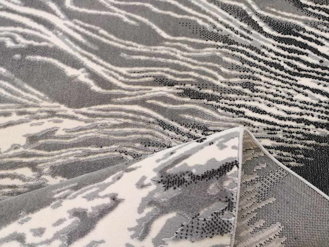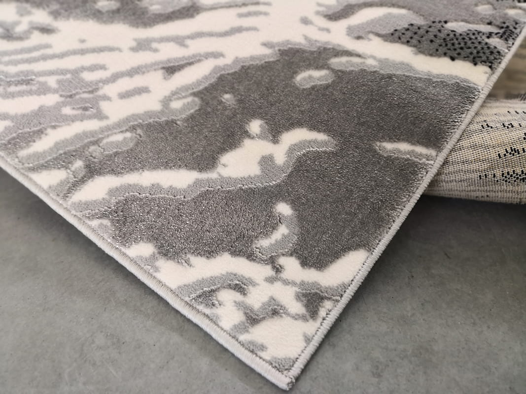 Szary dywan Elite o abstrakcyjnych motywach, został wykonany z dwóch rodzajów przędzy syntetycznej o dobrych parametrach jakościowych. Włókno poliestrowe nadaje mu delikatnego połysku i miękkości.