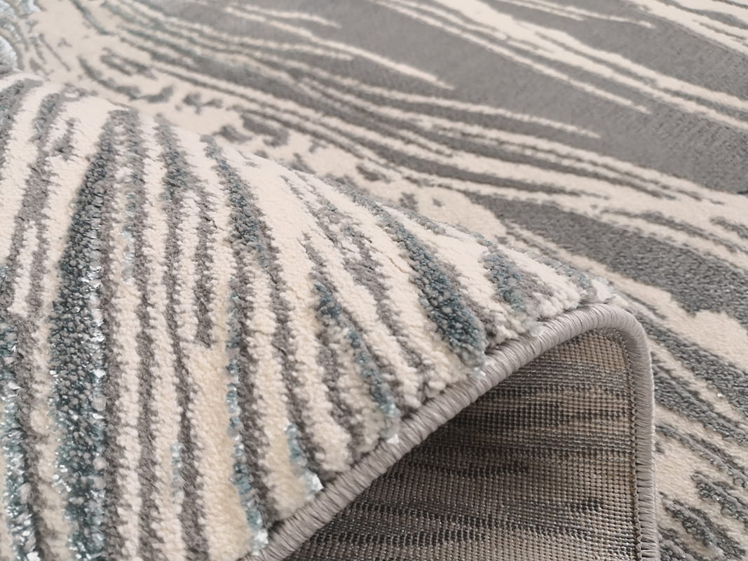 Niebieski dywan Elite o abstrakcyjnych motywach, został wykonany z dwóch rodzajów przędzy syntetycznej o dobrych parametrach jakościowych. Włókno poliestrowe nadaje mu delikatnego połysku i miękkości.