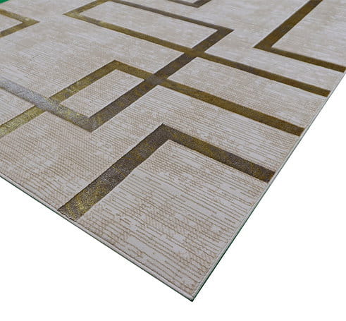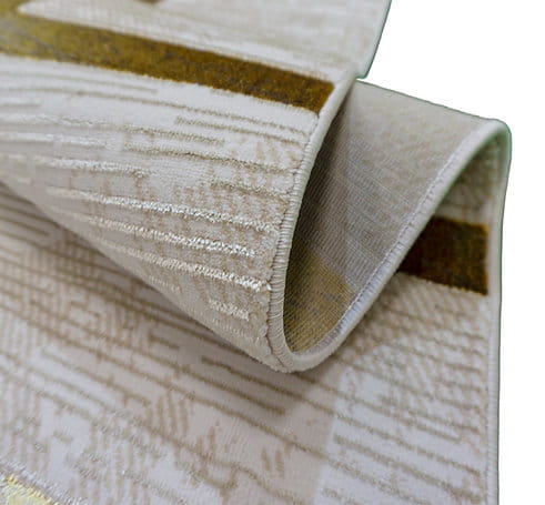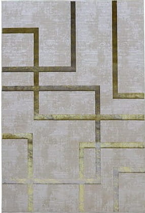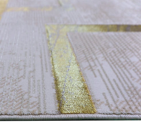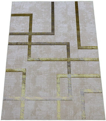 Dywan Esprit jest wykonany z dobrej jakości przędzy poliestrowej. Dwupoziomowe runo tworzy trójwymiarowy efekt, a złote pasy o delikatnym połysku dodają finezji. To połączenie dobrego stylu z elegancją i komfortem użytkowania.