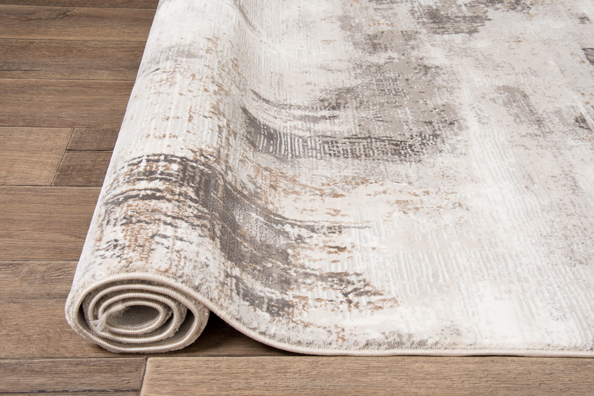 Przecierany dywan w stylu vintage w kolorystyce brązu i szarości będzie piękną ozdobą wnętrz. Dwupoziomowe runo tworzy trójwymiarowy efekt 3d a całości dopełnia delikatny połysk runa. Ze względu na rodzaj użytego do ich produkcji włókna oraz gęstości runa dywany te są bardzo praktyczne w użytkowaniu.