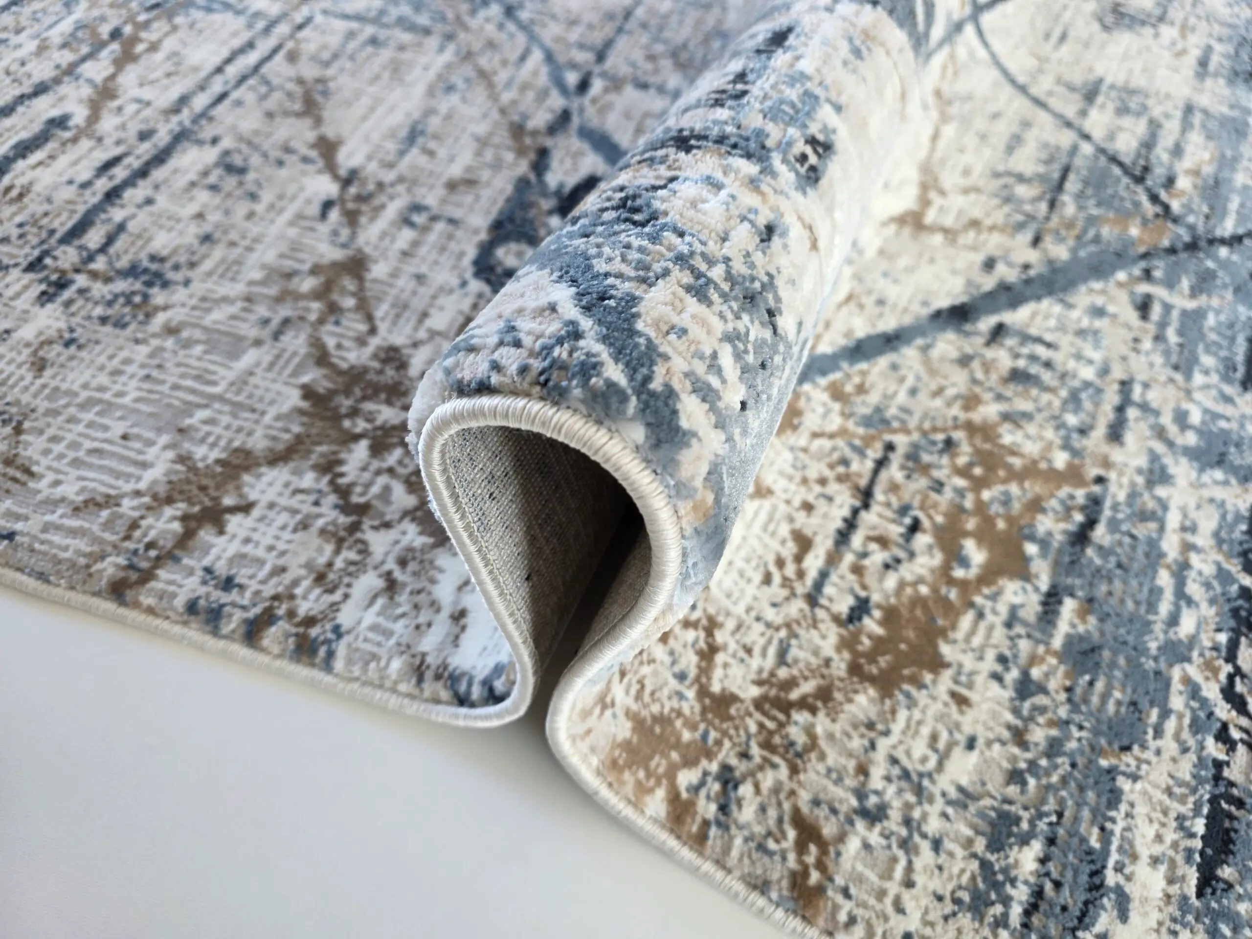 Dywan w stylu vintage w kolorystyce niebieskiej będzie piękną ozdobą wnętrz. Dwupoziomowe runo tworzy trójwymiarowy efekt 3d, a całości dopełnia delikatny połysk runa. Ze względu na rodzaj użytego do ich produkcji włókna oraz gęstości runa dywany te są bardzo praktyczne w użytkowaniu.
