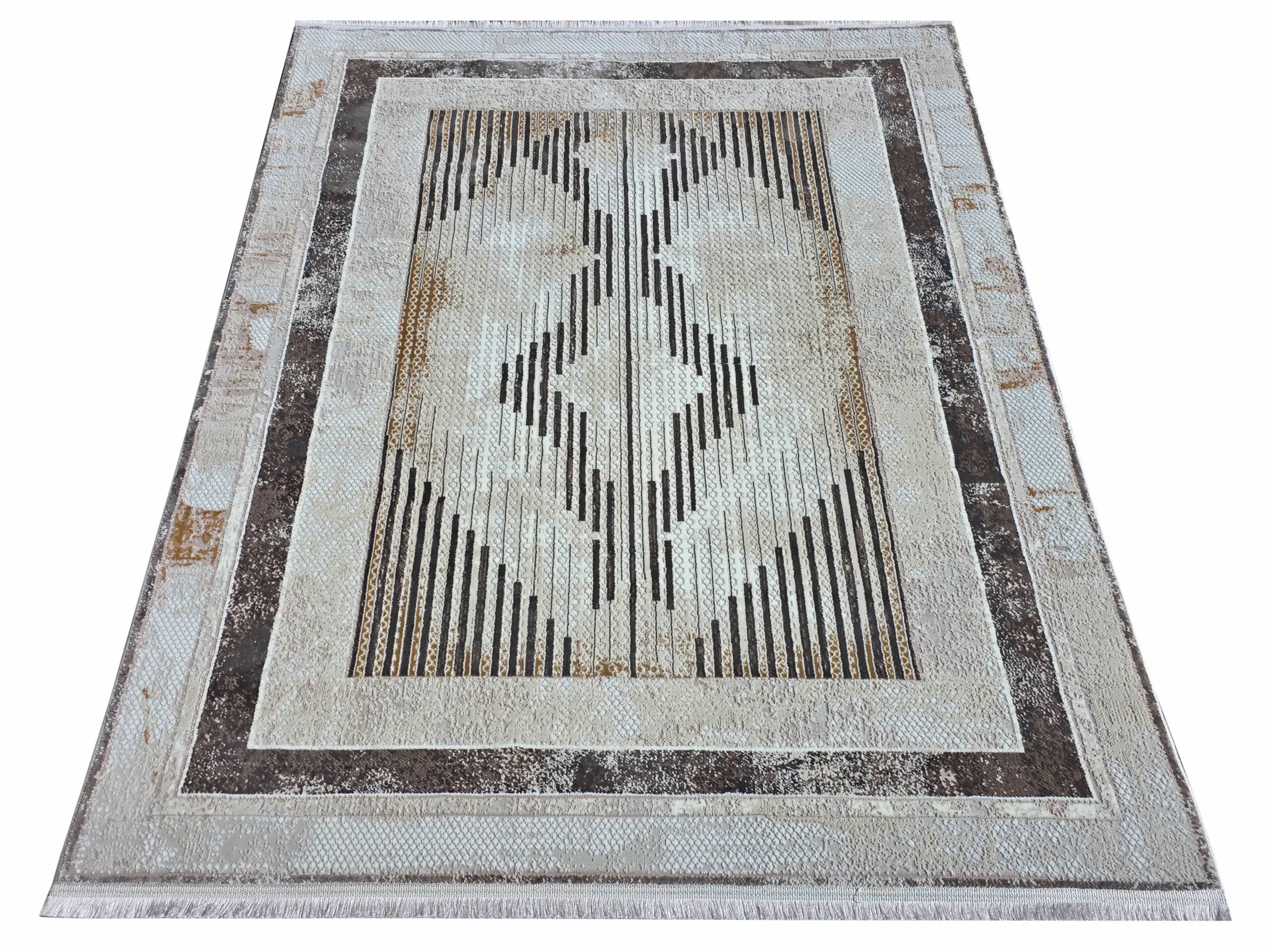 Dywan geometryczny z frędzlami Exclusive 393 beżowo-brązowy