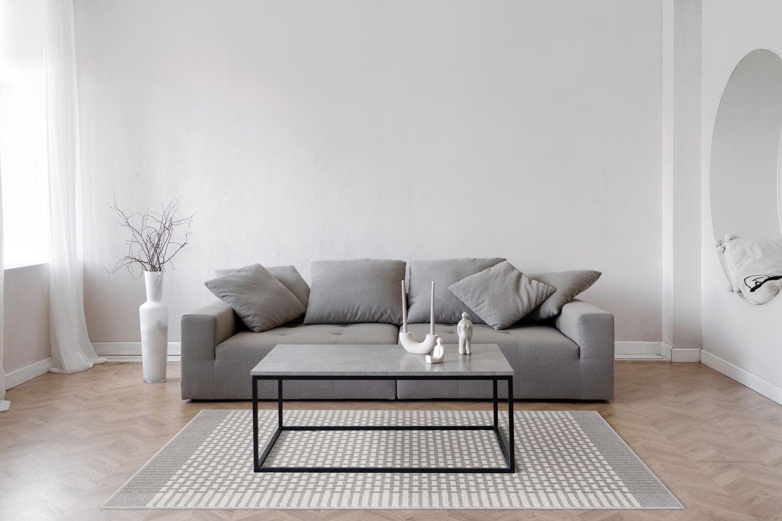 Dywan zachwyca efektem trójwymiarowości 3D, który powstaje dzięki połączeniu runa ciętego z pętelką, tworząc wyrazistą i nowoczesną strukturę.