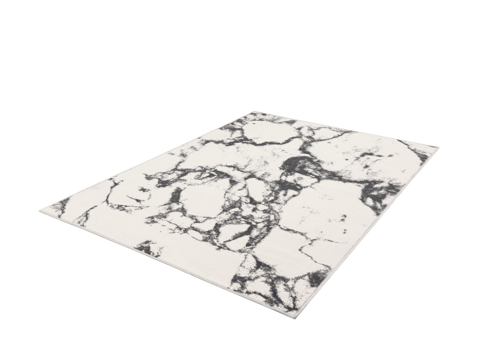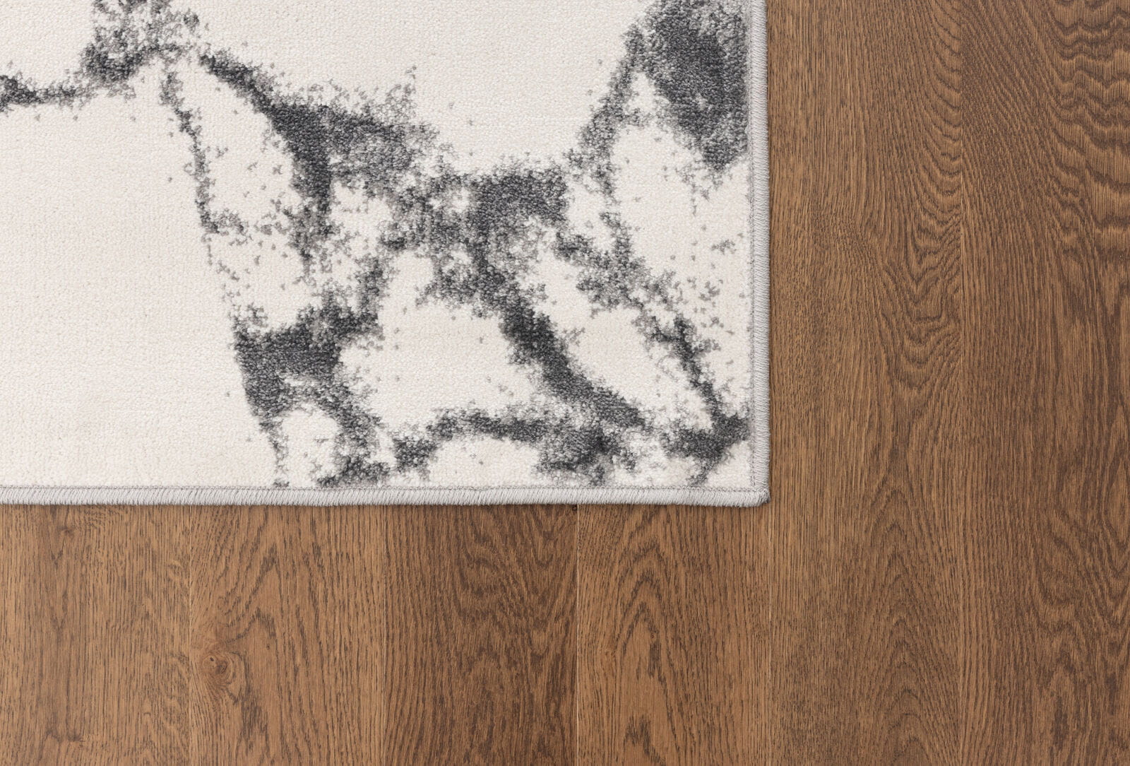 Dywan o wzorze imitującym naturalny marmur. Wykonany z przędzy polipropylenowej, ma krótkie runo, przez co jest łatwy w utrzymaniu czystości, nawet wówczas, gdy w domu są czworonogi. Wzór oraz kolorystyka produktu wpisują się w nowoczesne trendy wnętrzarskie.