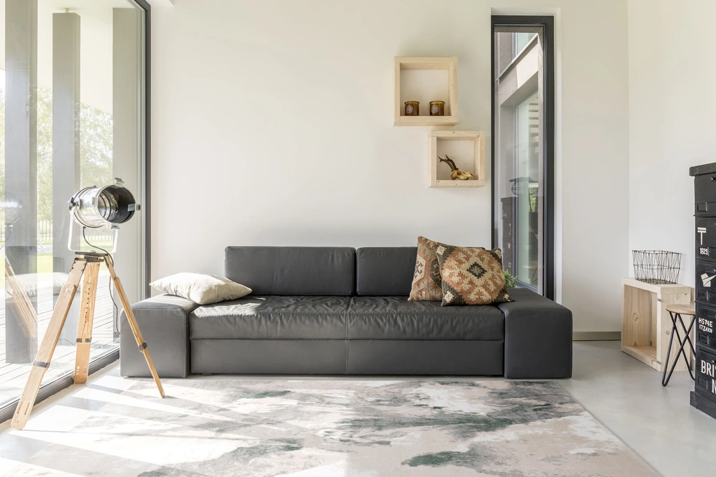 Dywan o wzorze imitującym naturalny marmur nada wnętrzu nowoczesny i dynamiczny charakter. Dywan został wykonany z przędzy polipropylenowej więc jest bardzo łatwy w utrzymaniu czystości. Krótkie runo jest praktyczne nawet wówczas, gdy w domu zamieszkują czworonogi.