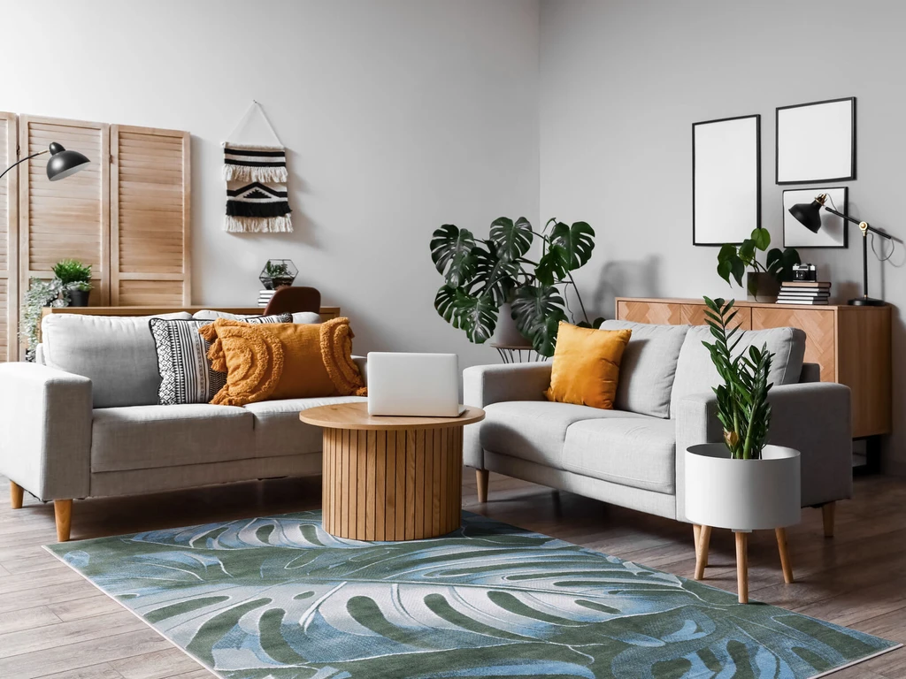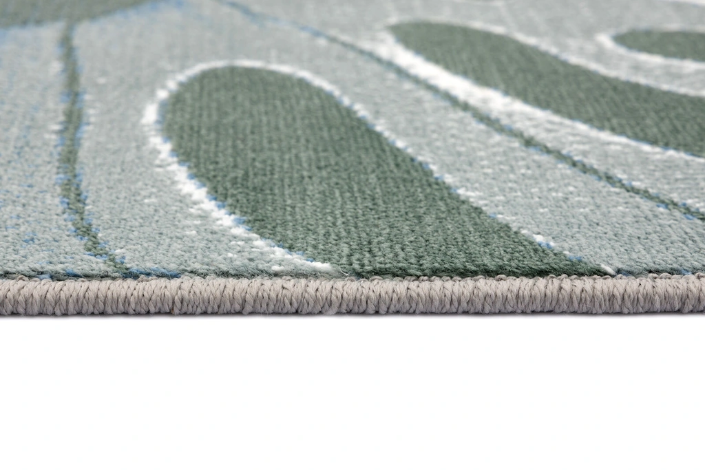 Piękny motyw liści monstery wprowadza do wnętrza spokój i naturalną atmosferę. Dywan został wykonany z przędzy polipropylenowej więc jest bardzo łatwy w utrzymaniu czystości. Krótkie runo jest praktyczne nawet wówczas, gdy w domu zamieszkują czworonogi.