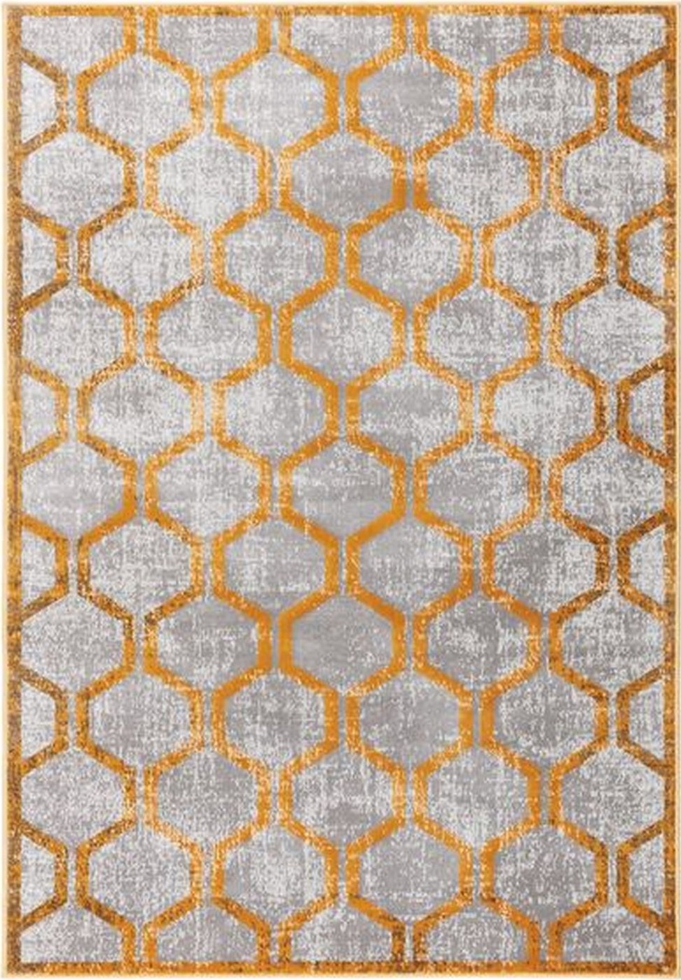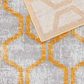 Dywan wykonany z uszlachetnionej termicznie przędzy polipropylenowej Heat Set jest miękki i przyjemny w dotyku. Delikatny połysk sprawia, że w zależności od ułożenia włosia runo nabiera jaśniejszych lub ciemniejszych tonów, tworząc ciekawy efekt wizualny. Wzór koniczyny marokańskiej w odcieniach złota i szarości nadaje całości elegancji oraz stylowego, dekoracyjnego charakteru.