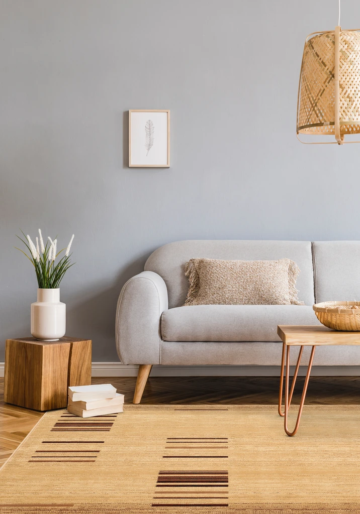 Dywan Standard Esma beżowy wykonany z uszlachetnionej termicznie przędzy polipropylenowej Heat Set. Miękkie i delikatne w dotyku runo do złudzenia przypomina dywan wełniany. Łatwo się czyści i odkurza, trwały, odporny na utratę kolorów i odkształcanie.