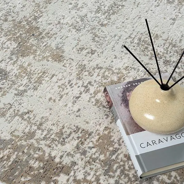 Nowoczesny dywan z abstrakcyjnym, przecieranym wzorem o miękkim, gęstym runie. Delikatne frędzle dodają lekkości oraz dekoracyjnego charakteru tworząc spójną i wyrafinowaną kompozycję.