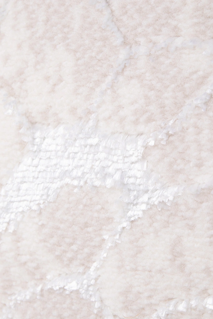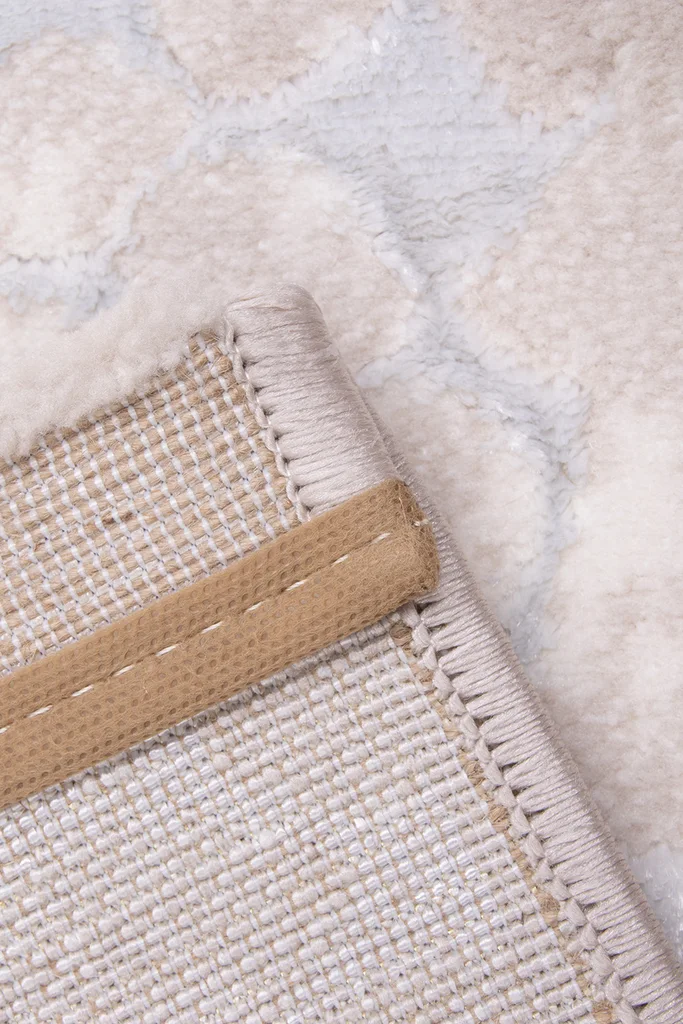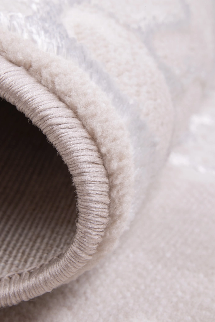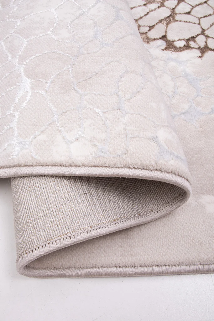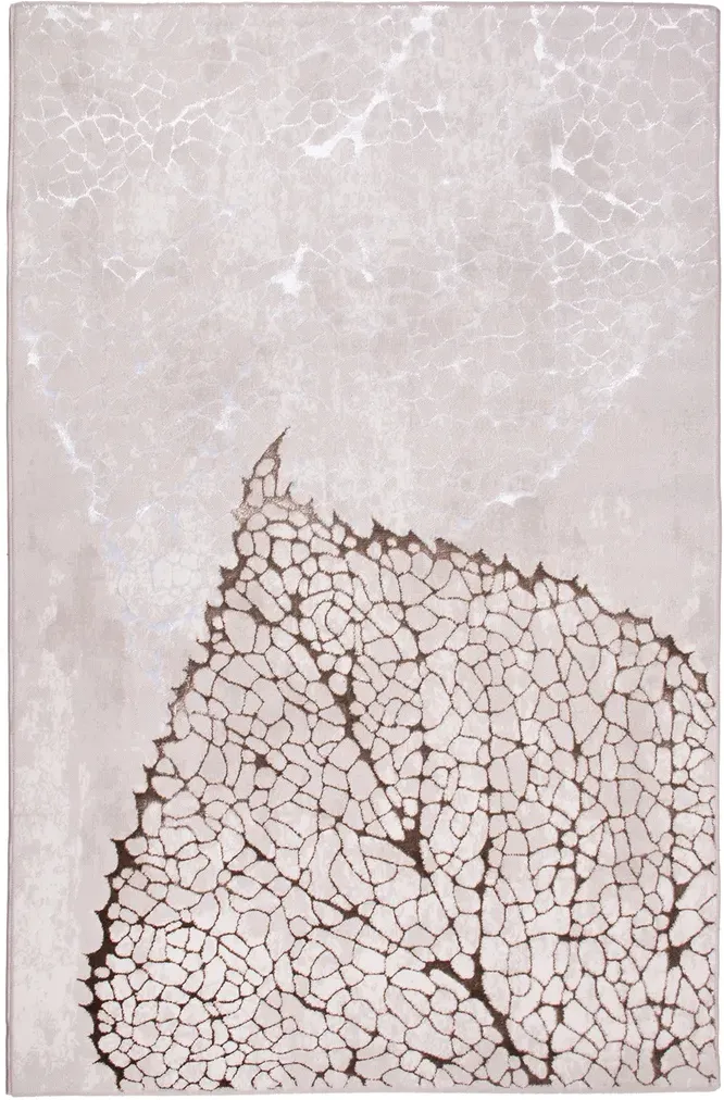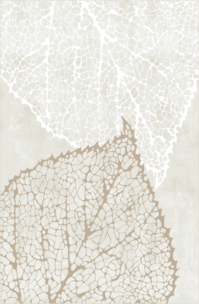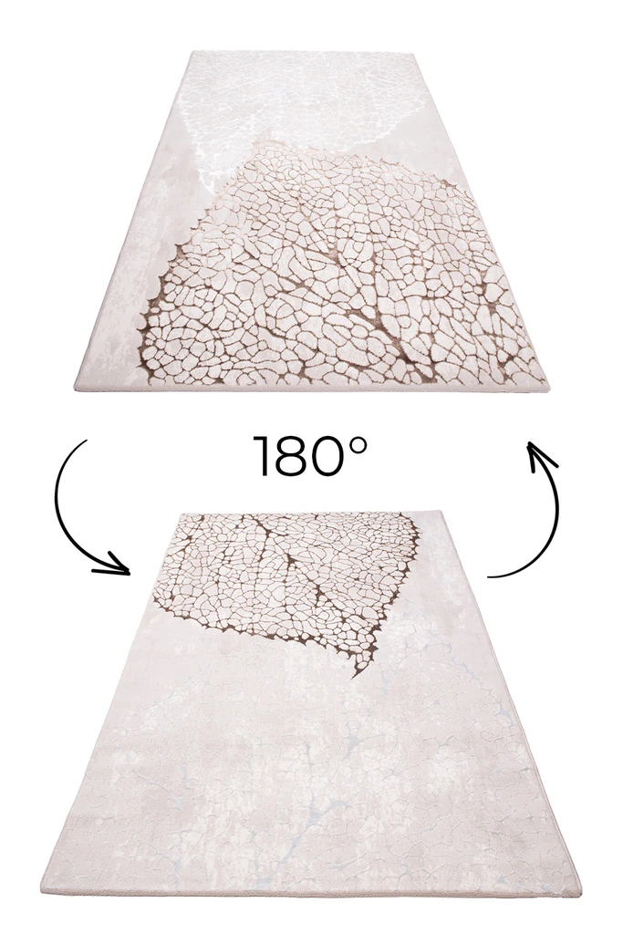Dywan z motywem natury w formie liści, utrzymany w beżowo–brązowej kolorystyce, wyróżnia się subtelnym i eleganckim połyskiem. Efekt ten uzyskano dzięki zastosowaniu przędzy poliestrowej, która nadaje powierzchni dywanu wyjątkowy blask i głębię.