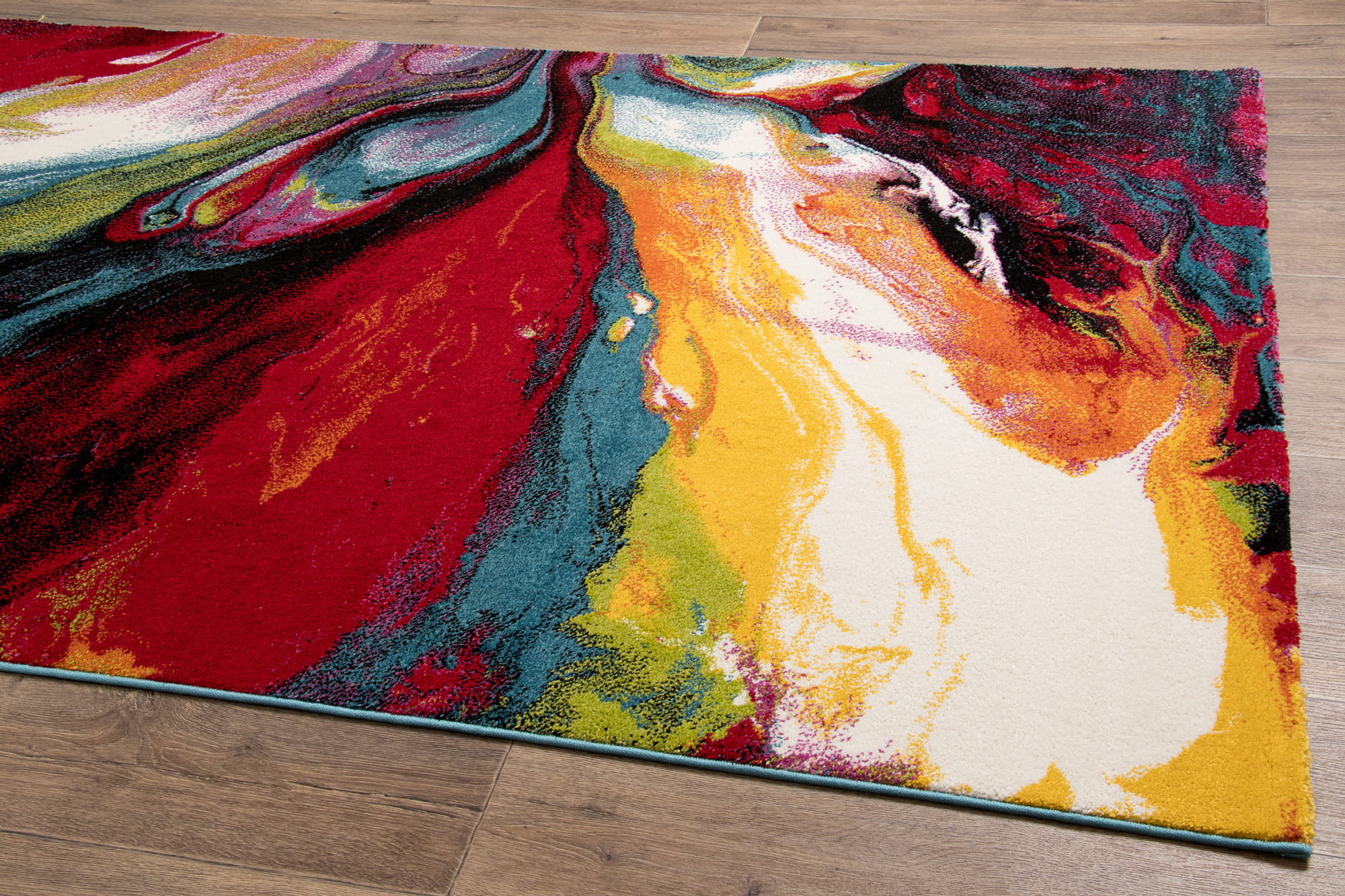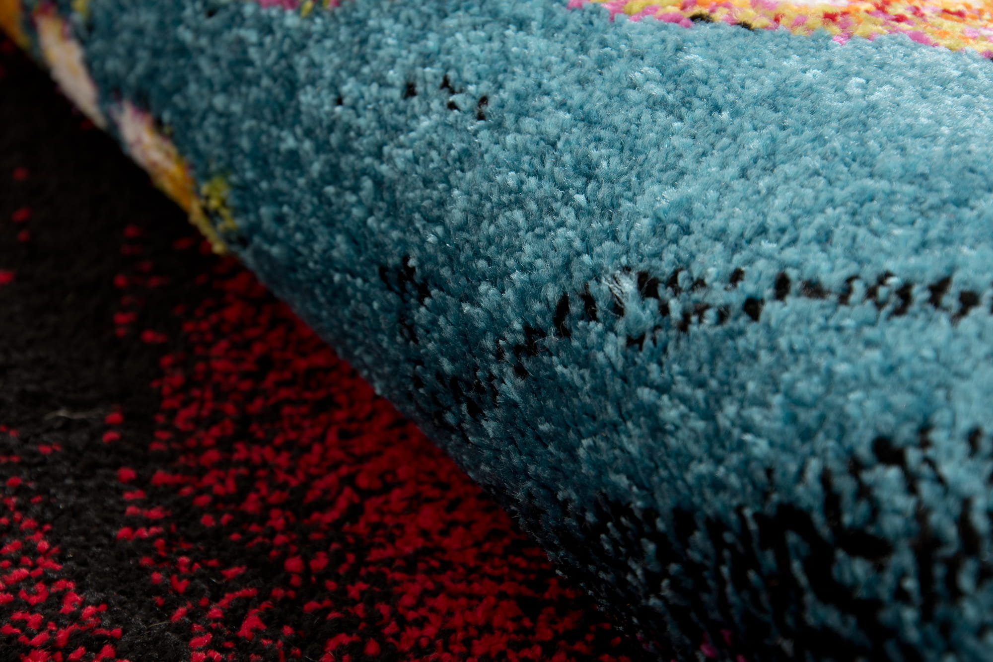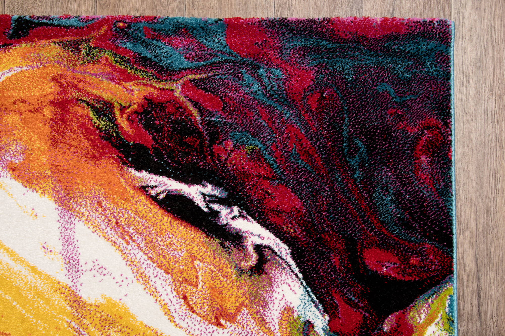 Dywan wyróżnia się gęstym, fryzowanym runem, które jest miękkie, przyjemne w dotyku i wyjątkowo trwałe. Doskonale izoluje od chłodu podłogi, zapewniając komfort i ciepło. Jego intensywne kolory oraz oryginalny wzór dodają wnętrzu charakteru, wprowadzając niepowtarzalny urok.