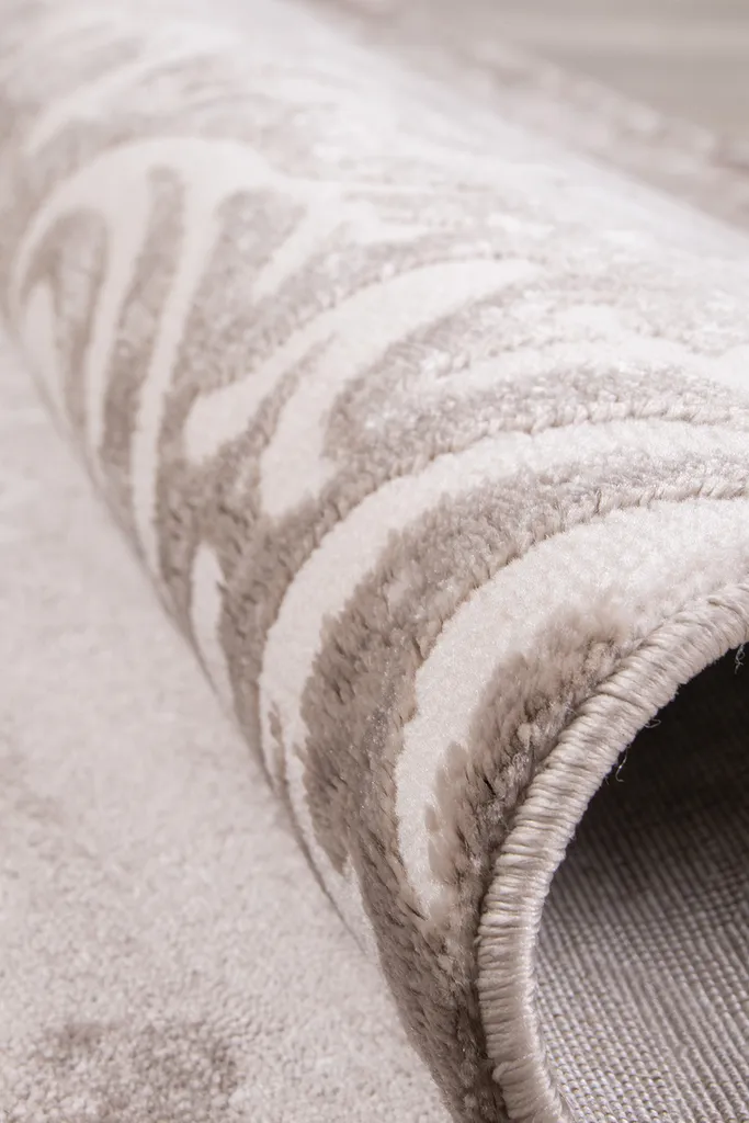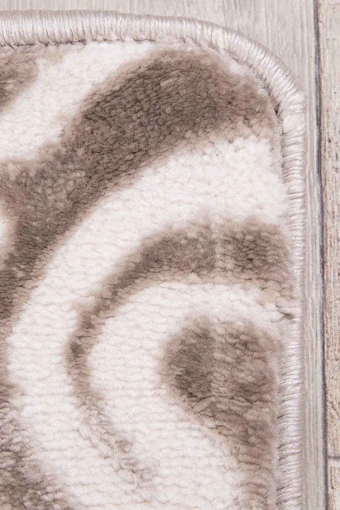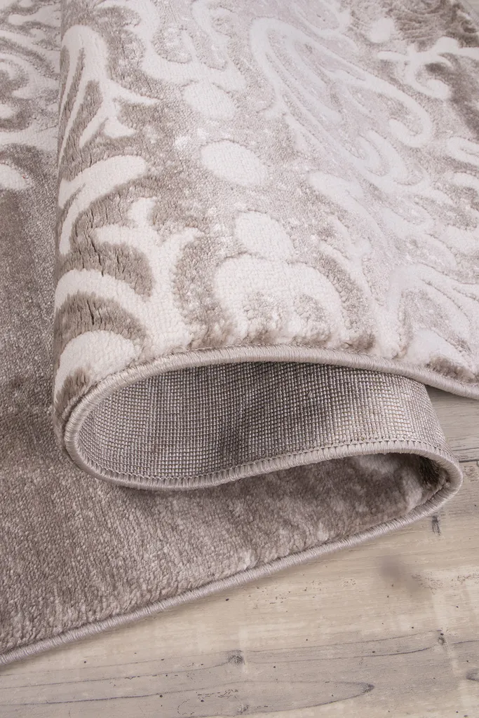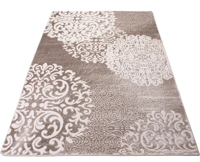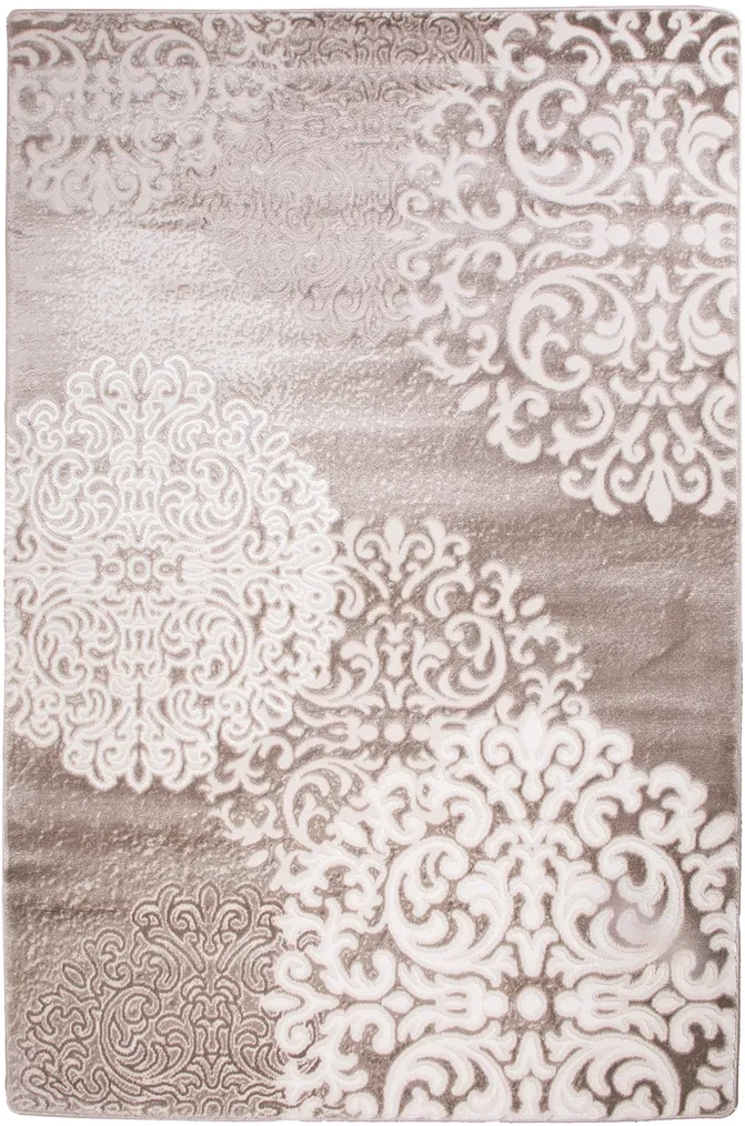 Dywan o subtelnym, dekoracyjnym wzorze inspirowanym koronką i motywami roślinnymi. Dwupoziomowe runo tworzy delikatny efekt 3D, a stonowana kolorystyka beżu, brązu i szarości nadaje mu elegancki, nowoczesny charakter. Miękki w dotyku, trwały i łatwy w pielęgnacji.