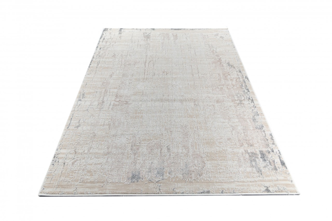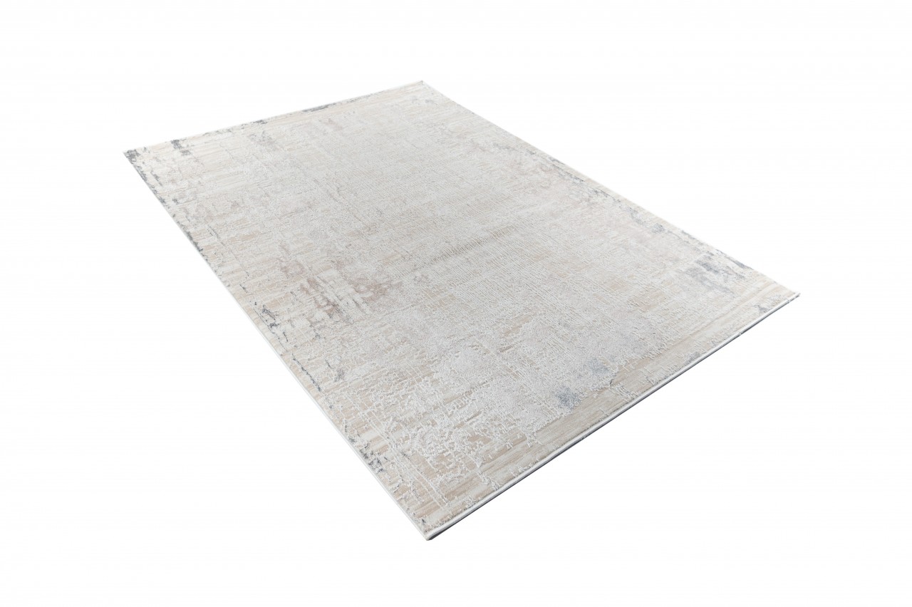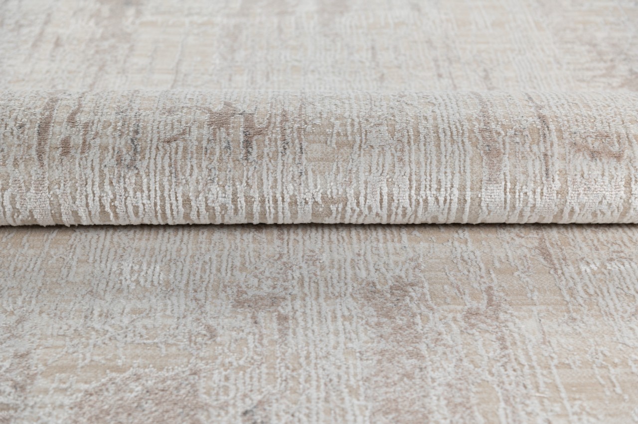 Dywan o dwupoziomowej strukturze w kremowo-beżowej tonacji z delikatnym, przecieranym wzorem. Wykonany z wysokiej jakości włókien syntetycznych, jest trwały, odporny na odkształcenia i łatwy w czyszczeniu.