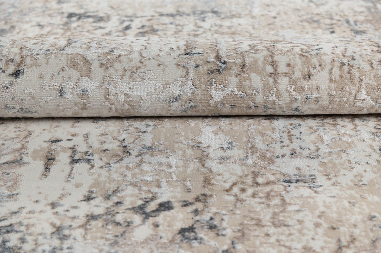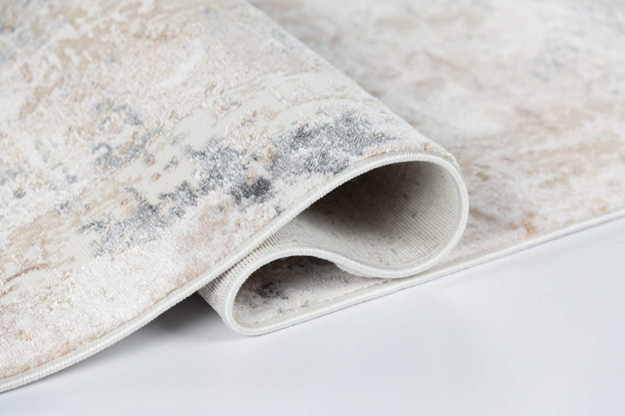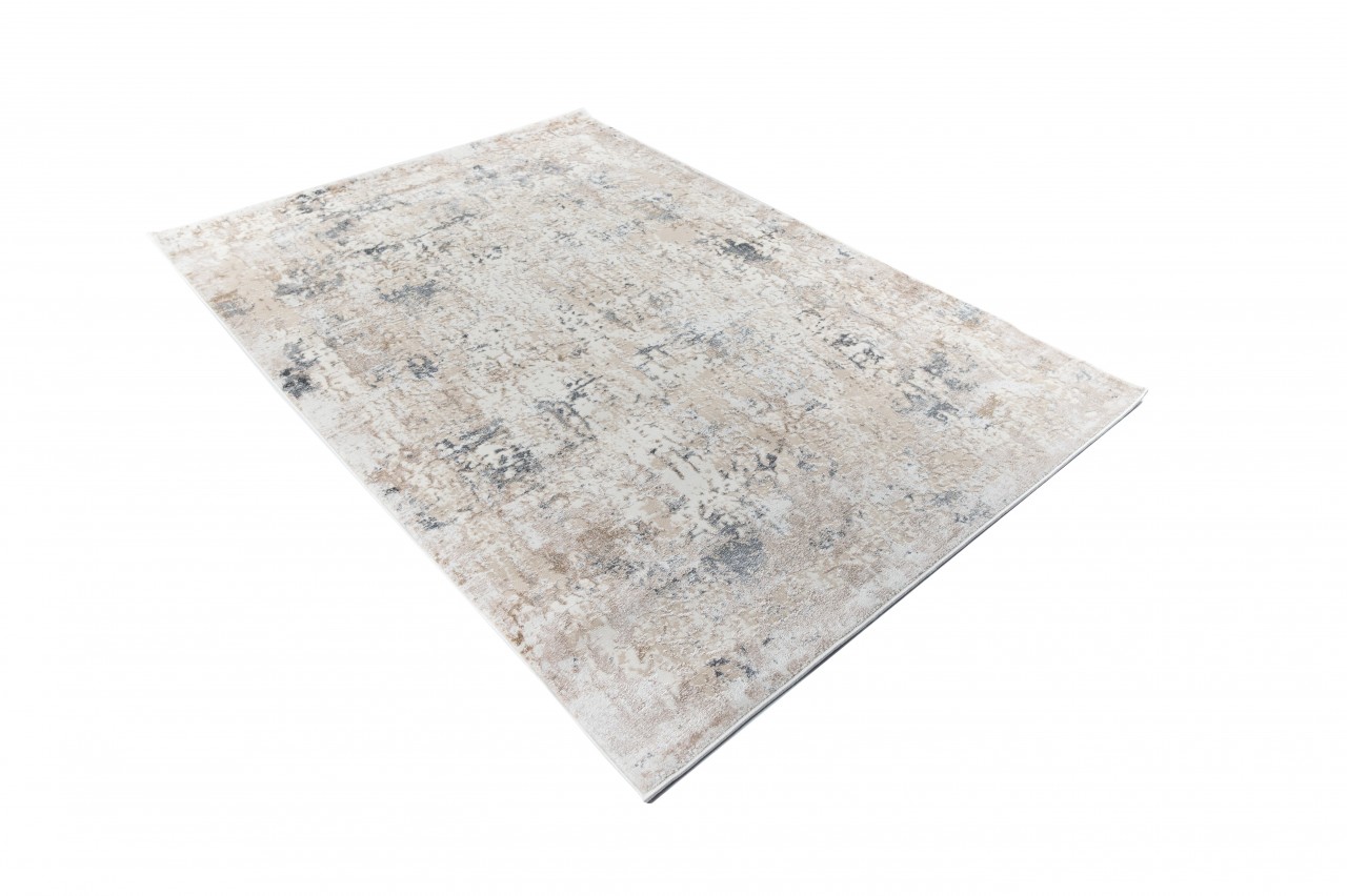 Dywan o dwupoziomowej strukturze w kremowo-beżowej tonacji z delikatnym, przecieranym wzorem. Wykonany z wysokiej jakości włókien syntetycznych, jest trwały, odporny na odkształcenia i łatwy w czyszczeniu.