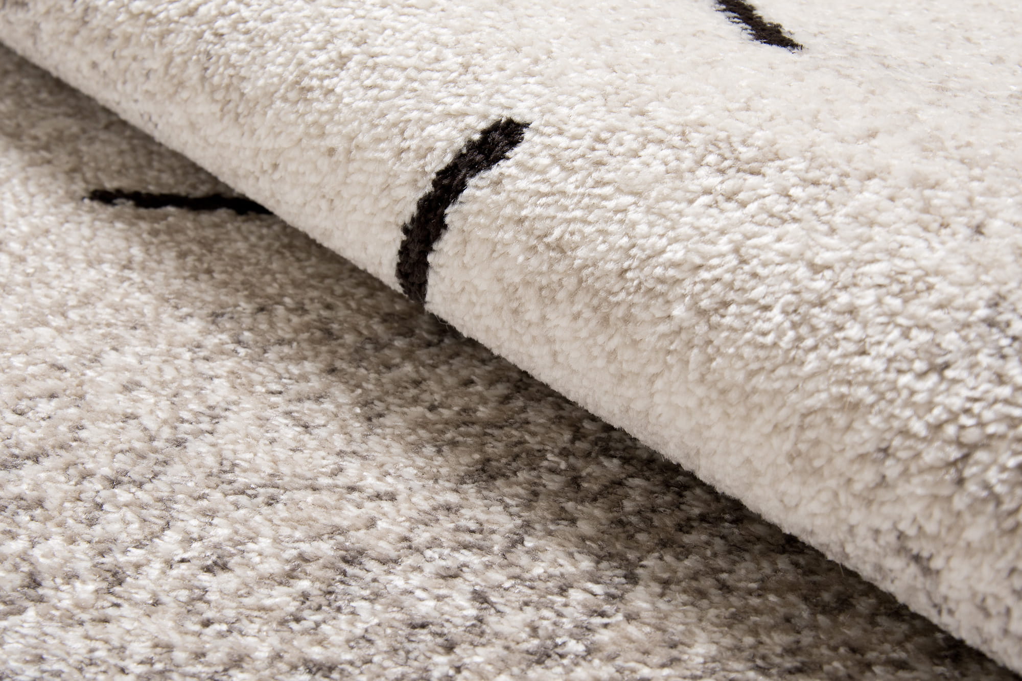 Dywan Perlage to połączenie nowoczesnego stylu i praktyczności. Wykonany z błyszczącej syntetycznej przędzy, jest łatwy w utrzymaniu czystości. Geometryczne wzory w odcieniach szarości nadają wnętrzu elegancji i nowatorskiego charakteru.