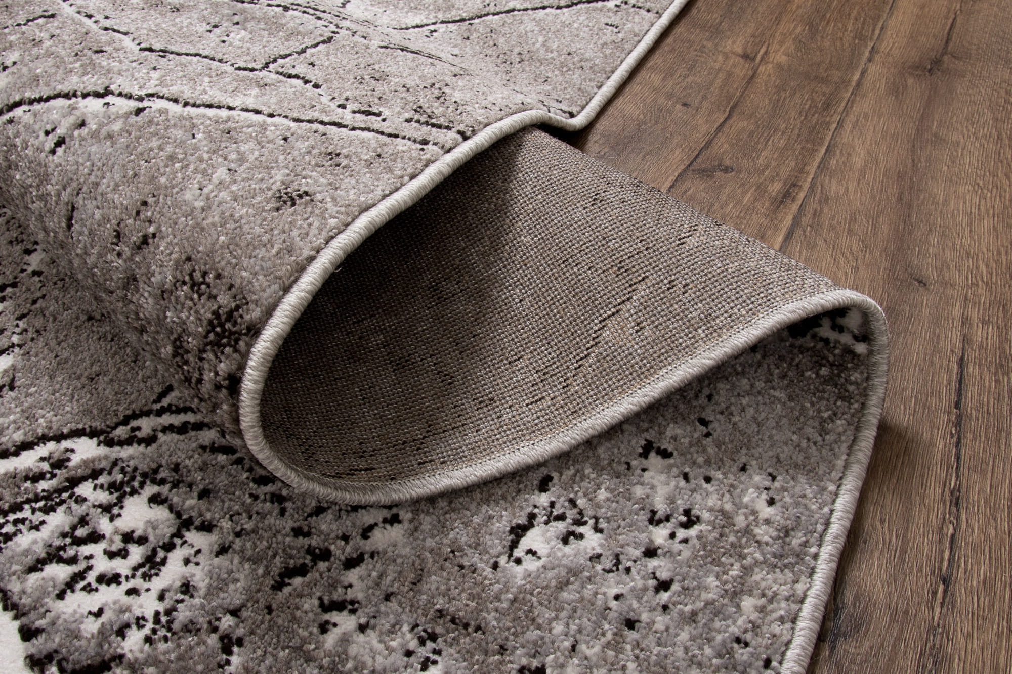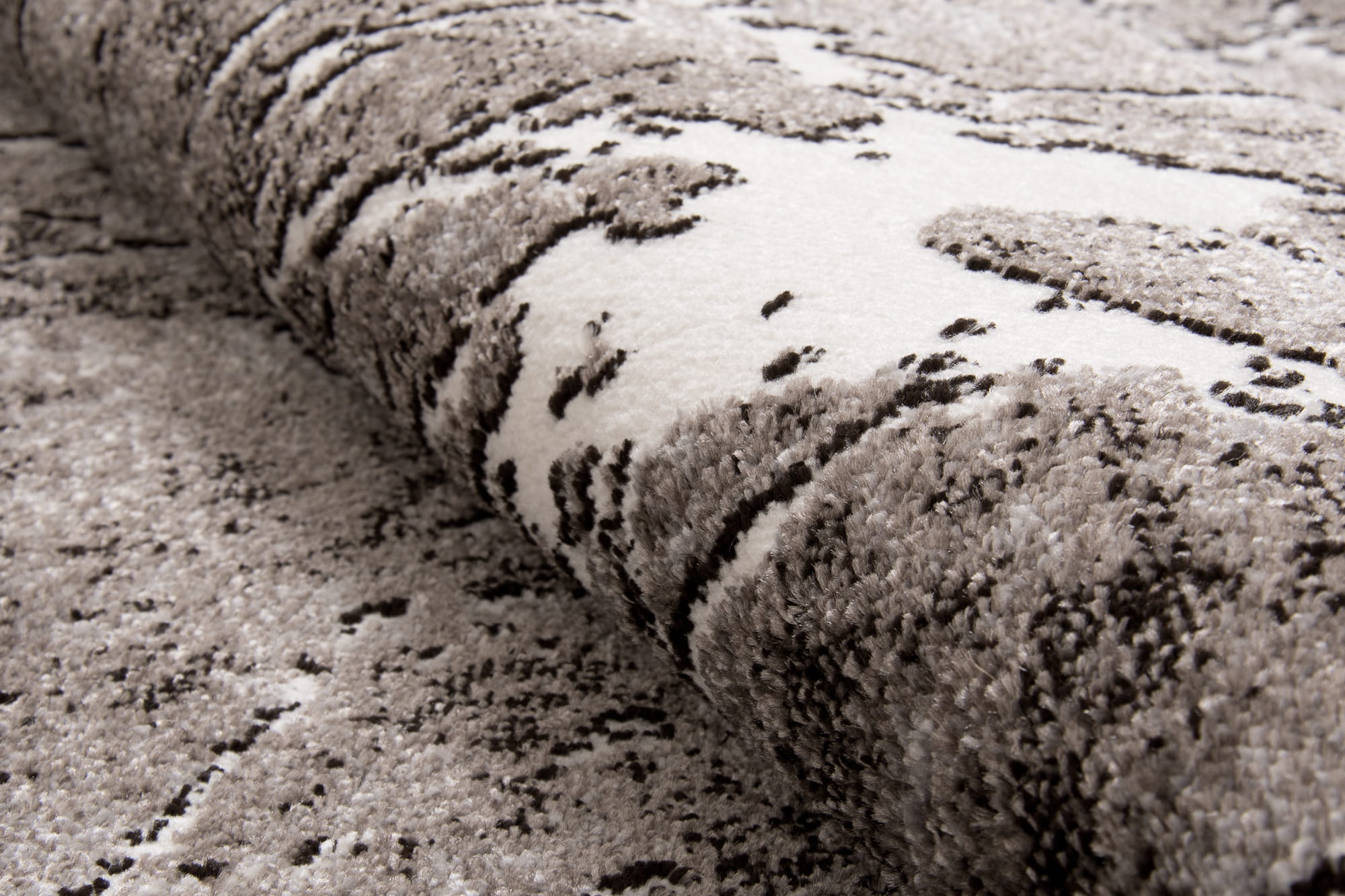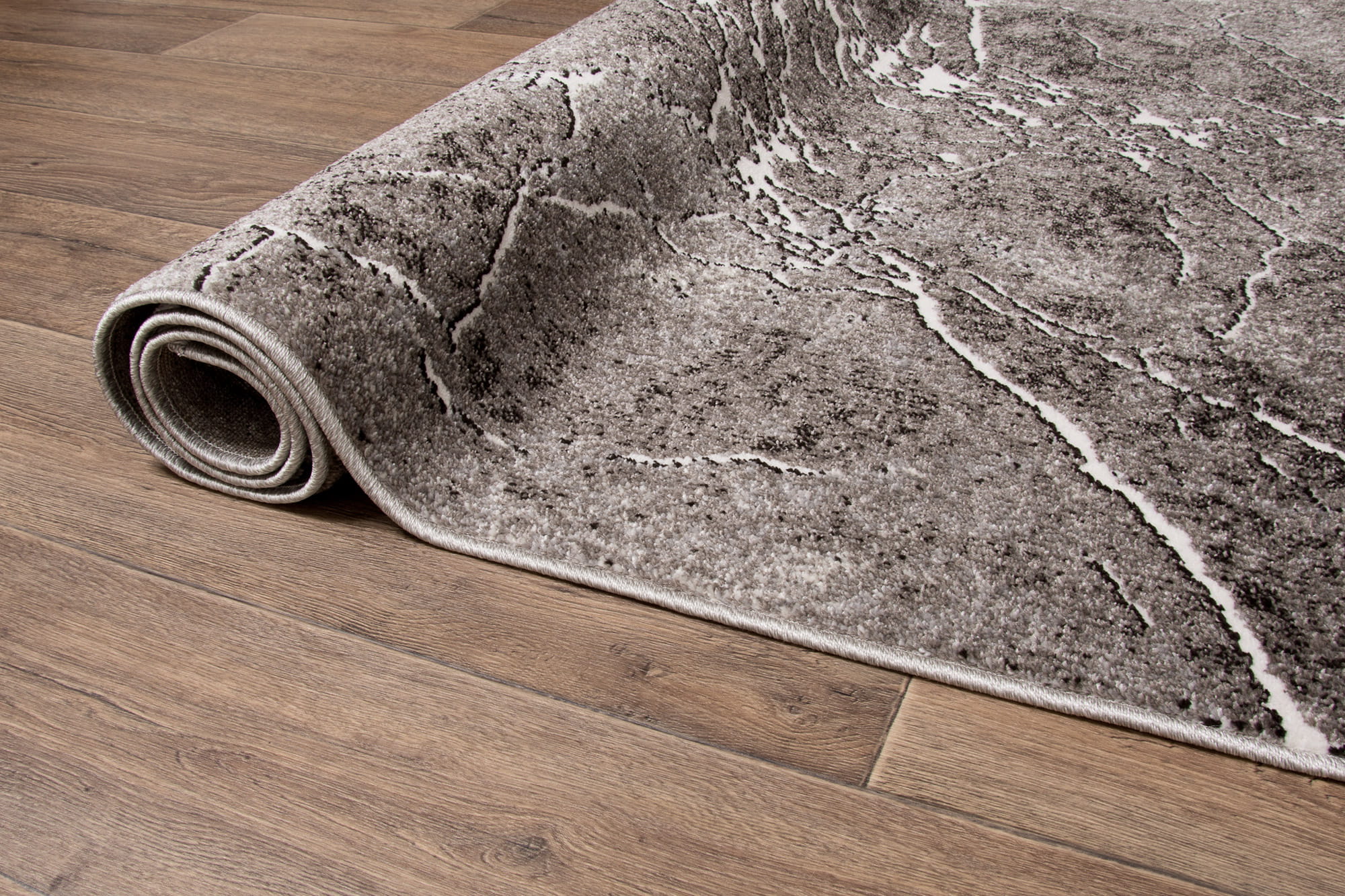 Dywan Perlage to połączenie nowoczesnego stylu i praktyczności. Wykonany z błyszczącej syntetycznej przędzy, jest łatwy w utrzymaniu czystości. Wzór przypominający marmur w odcieniach szarości nadają wnętrzu elegancji i nowatorskiego charakteru.