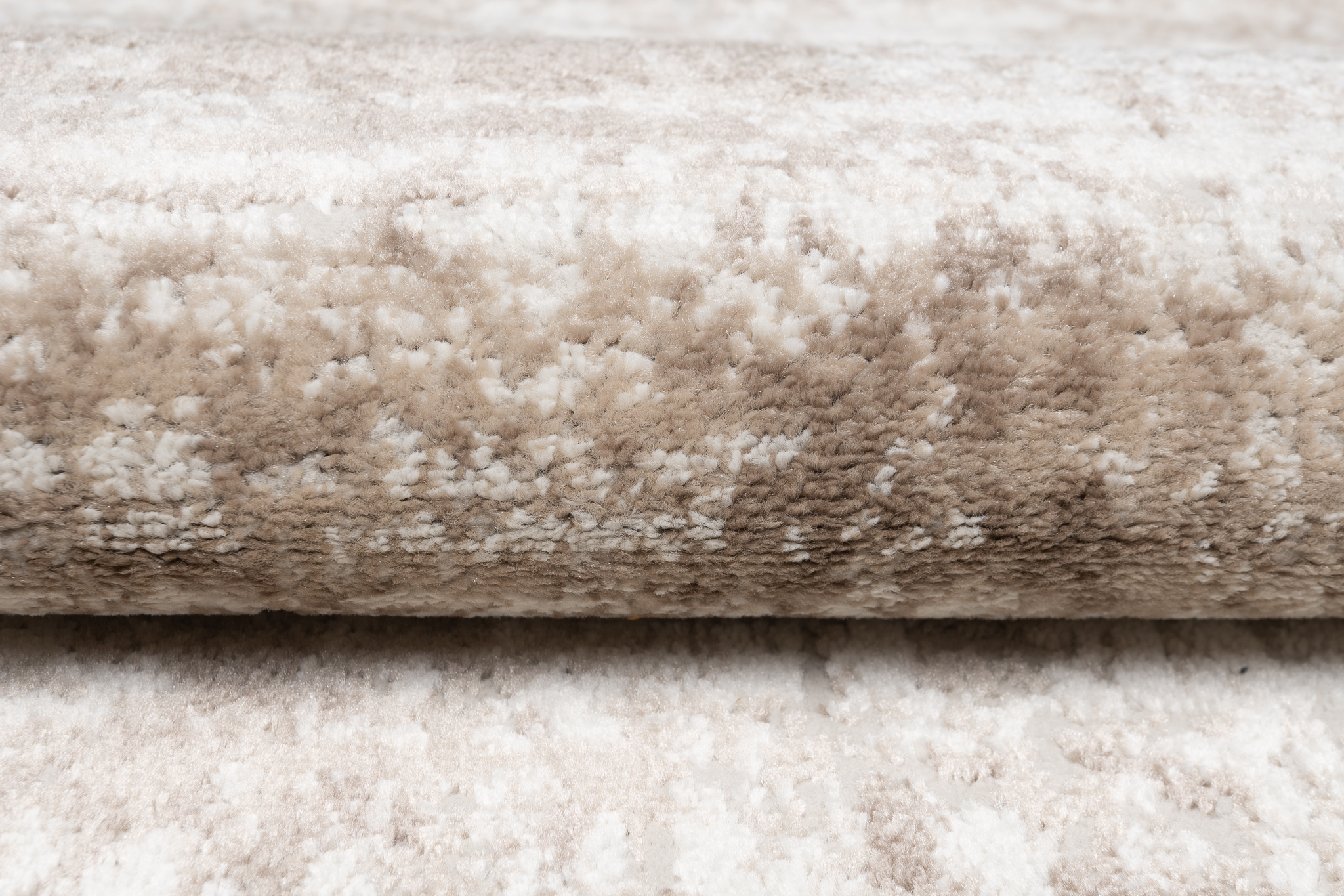 Dywan krótkowłosy wykonany z wysokiej jakości włókien syntetycznych. Utrzymany w kremowo-beżowej tonacji z subtelnym, przetartym wzorem w odcieniach jasnego brązu i piasku. Elegancki, trwały i łatwy w utrzymaniu czystości.