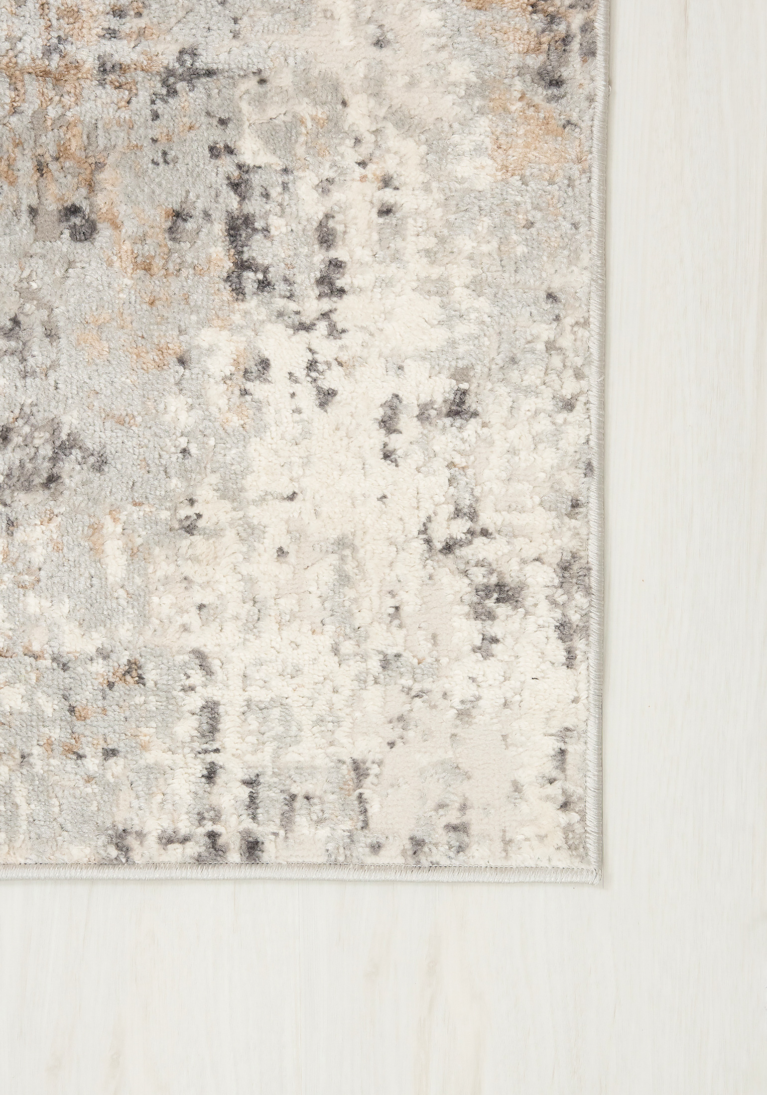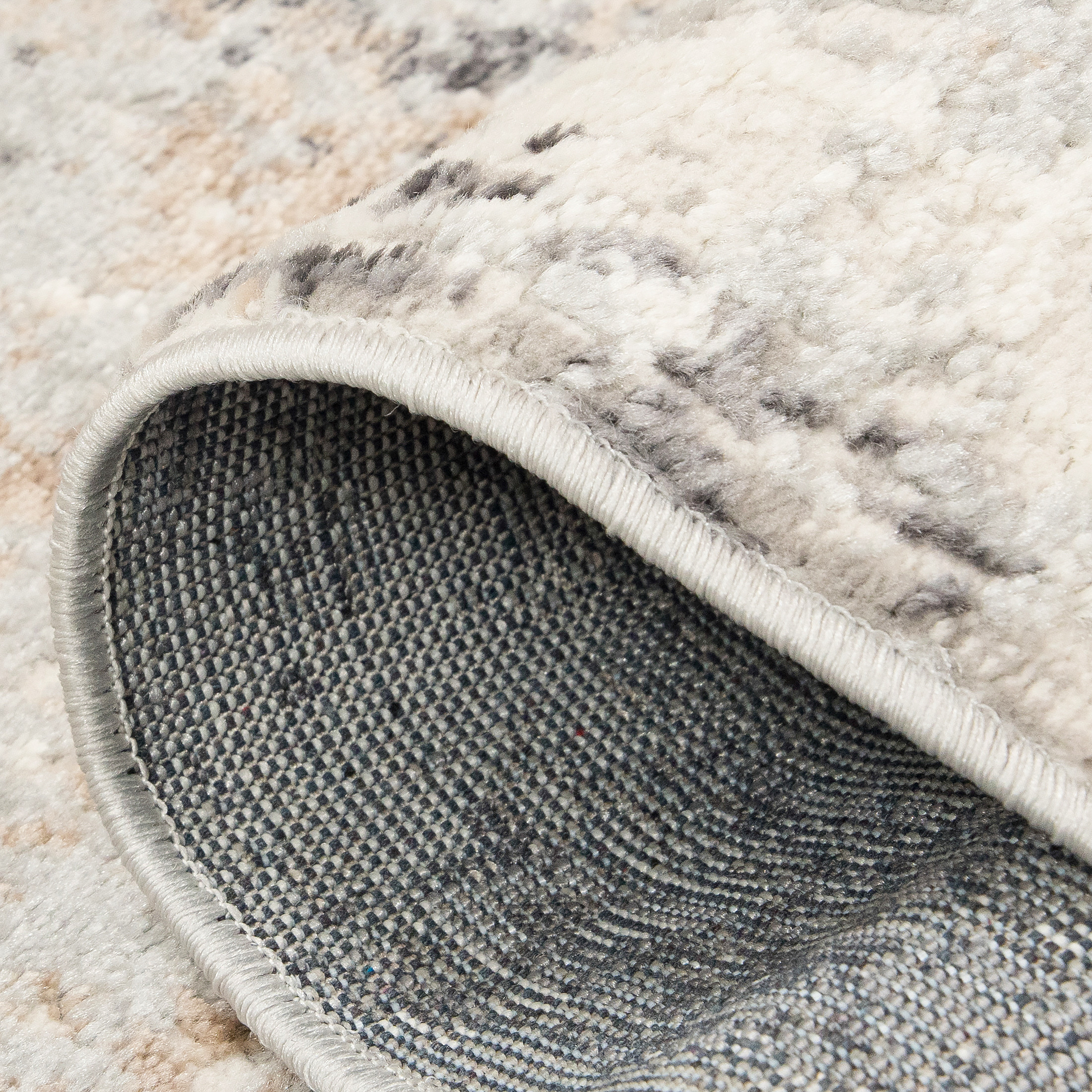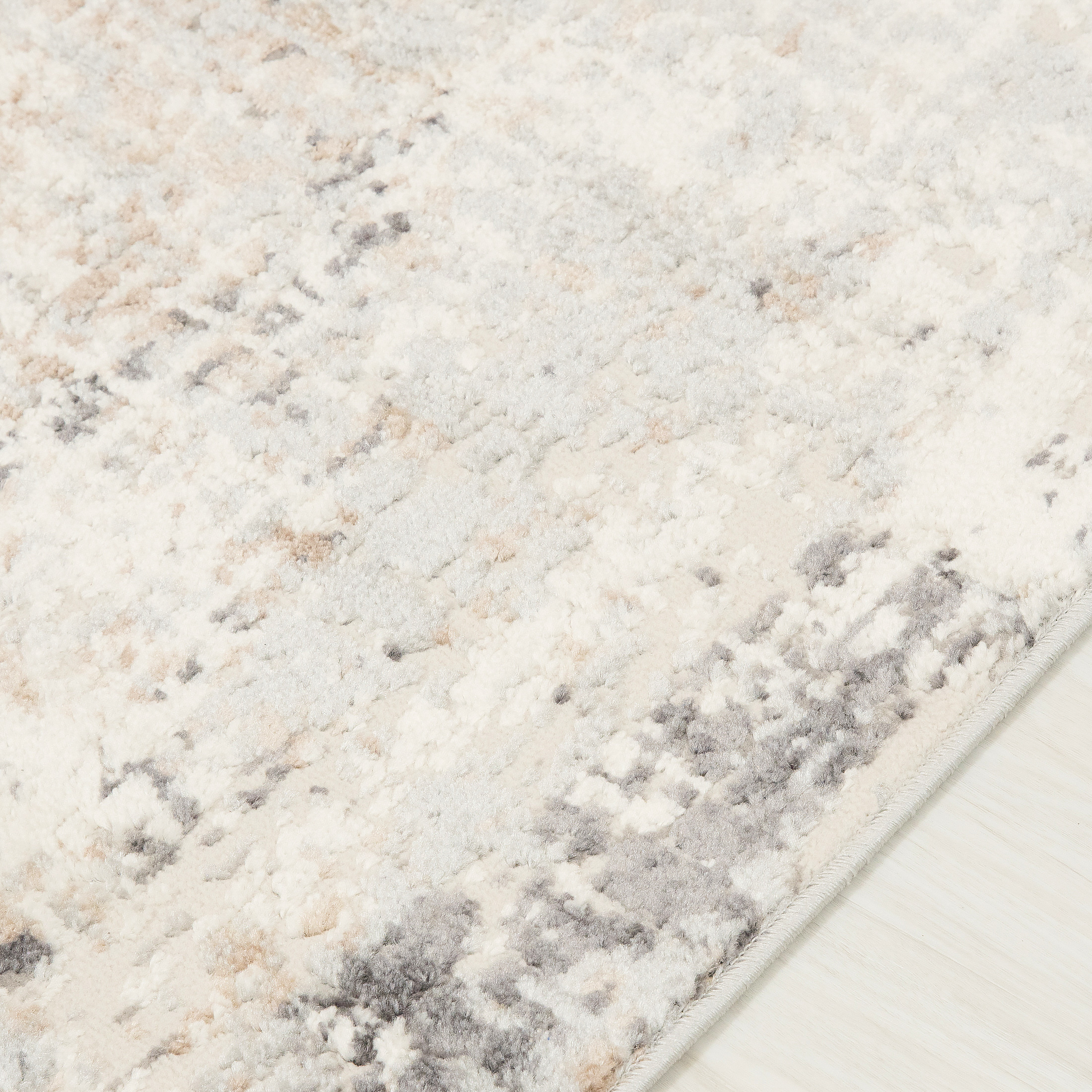 Dywan krótkowłosy wykonany z wysokiej jakości włókien syntetycznych. Utrzymany w kremowo-beżowej tonacji z subtelnym, przetartym wzorem w odcieniach jasnego brązu i piasku. Elegancki, trwały i łatwy w utrzymaniu czystości.