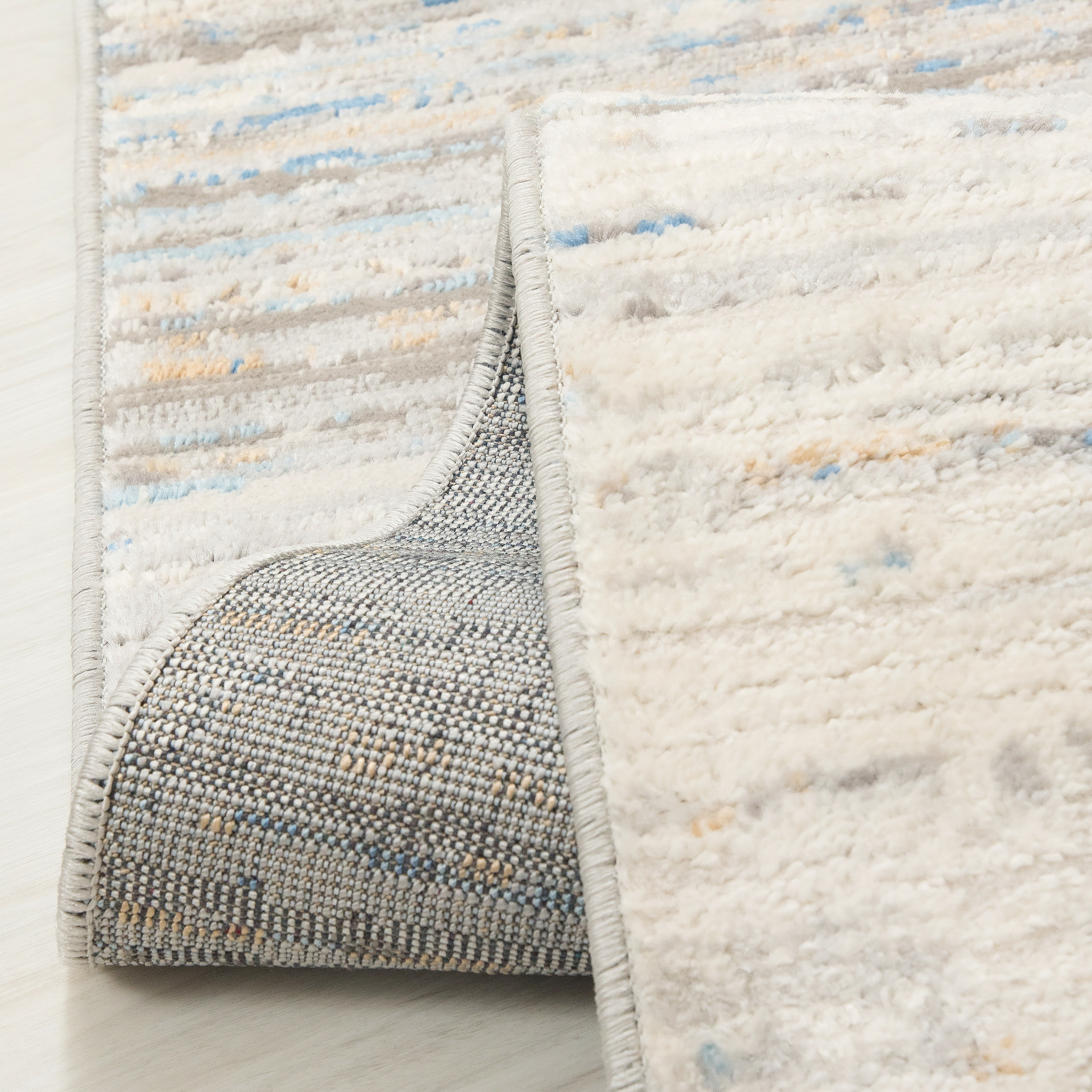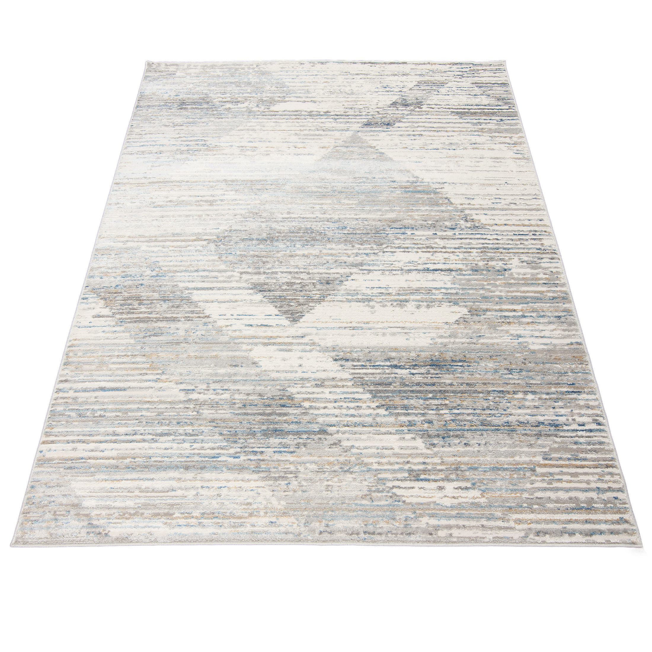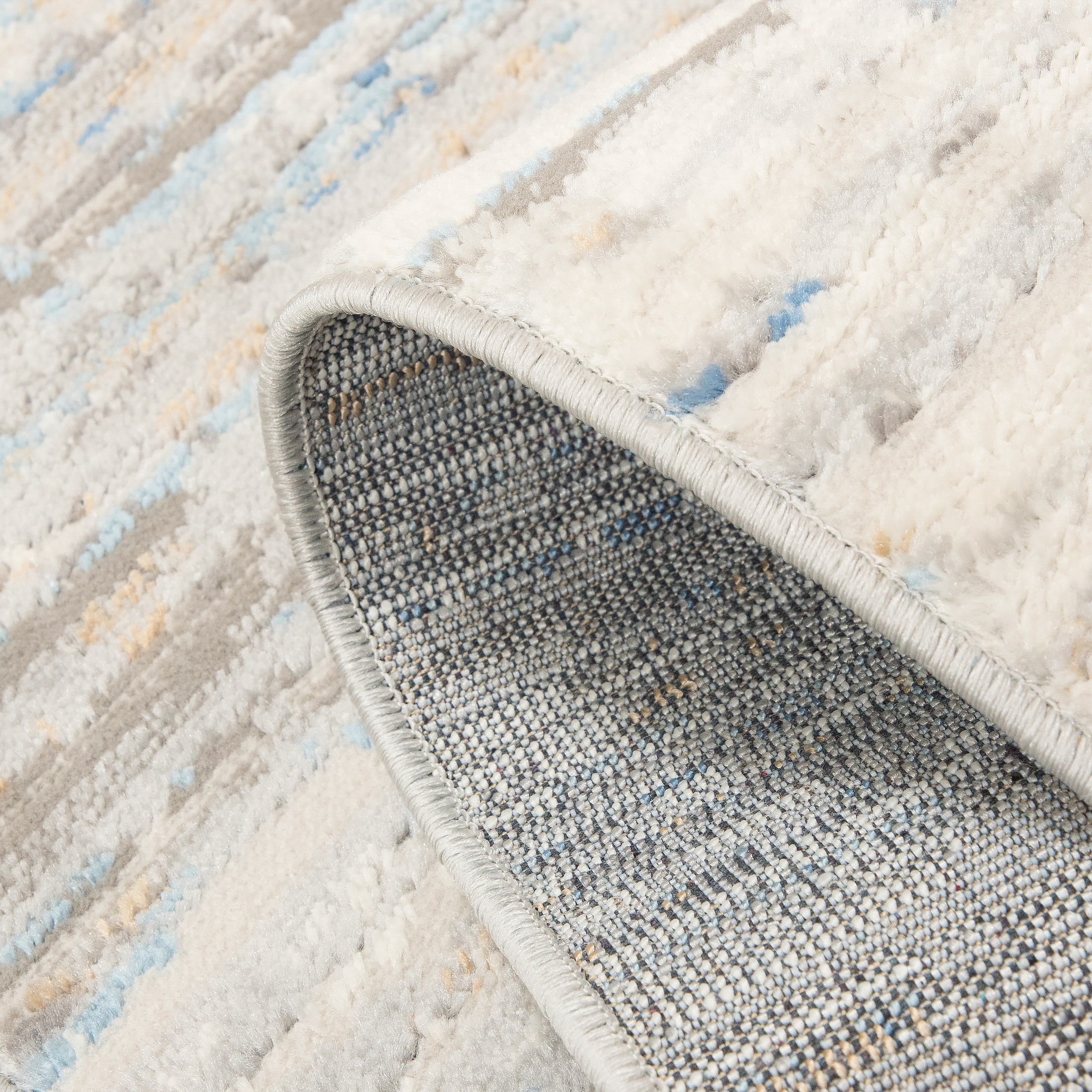 Dywan krótkowłosy wykonany z wysokiej jakości włókien syntetycznych. Zdobiony geometrycznym wzorem z przecinających się linii w kremowej tonacji z akcentami szarości i niebieskiego. Nowoczesny, lekko przecierany efekt nadaje mu wyjątkowy charakter. Dywan jest elegancki, trwały i łatwy w utrzymaniu czystości.