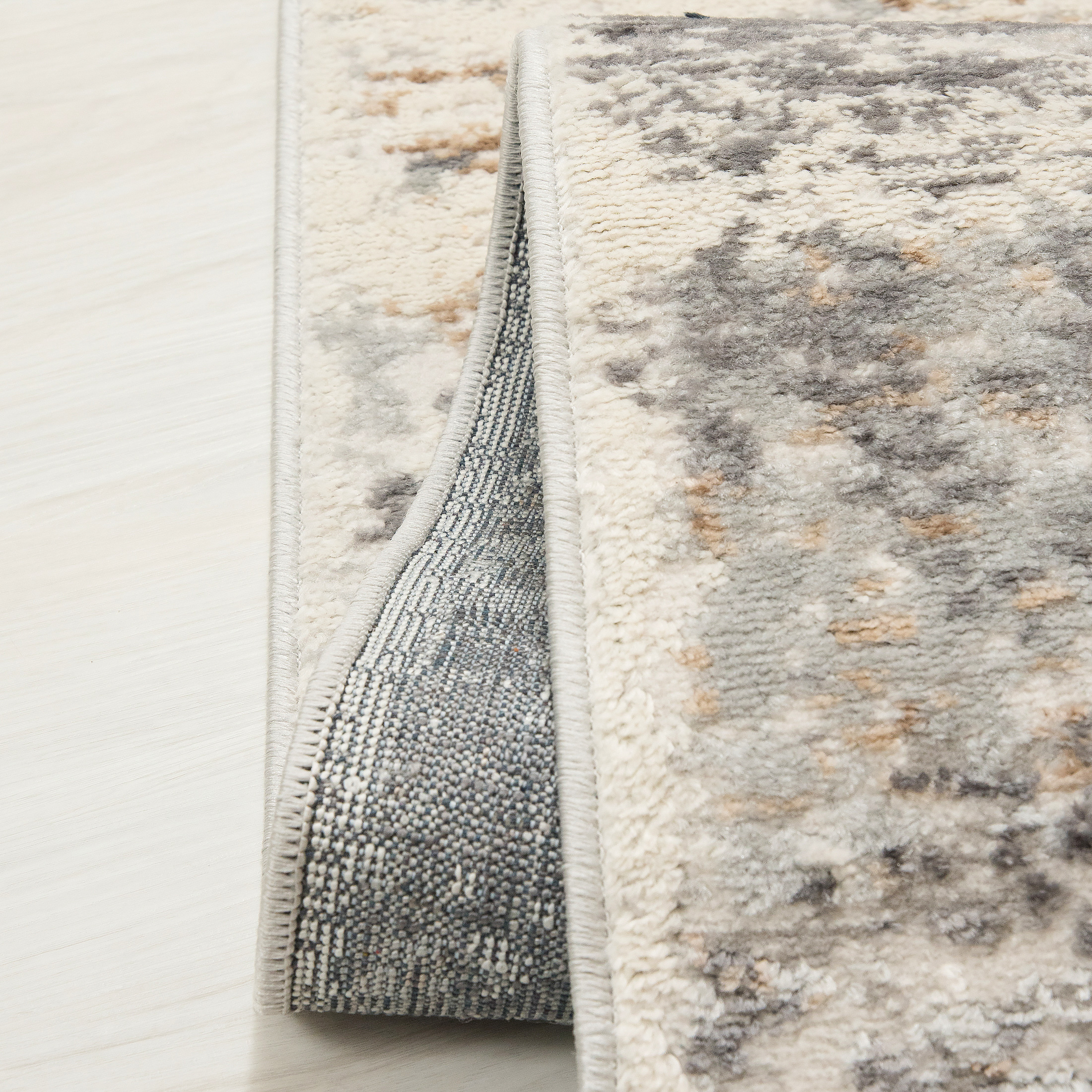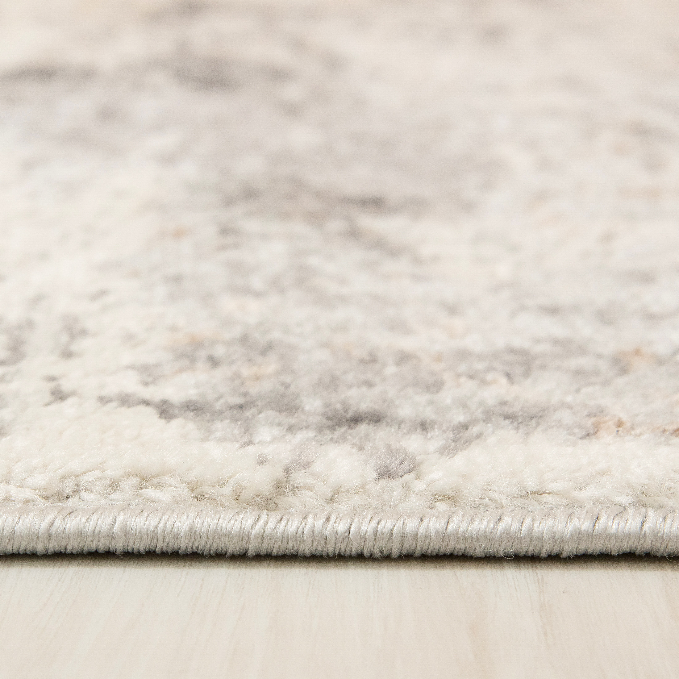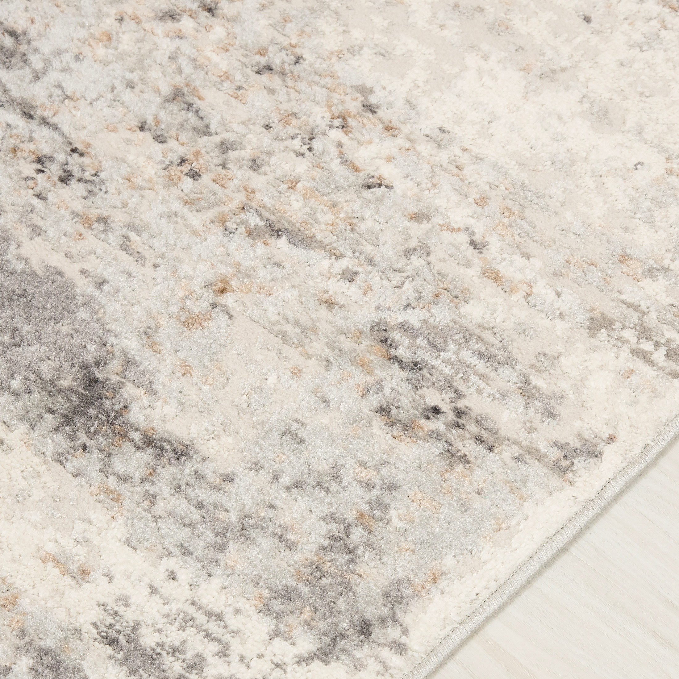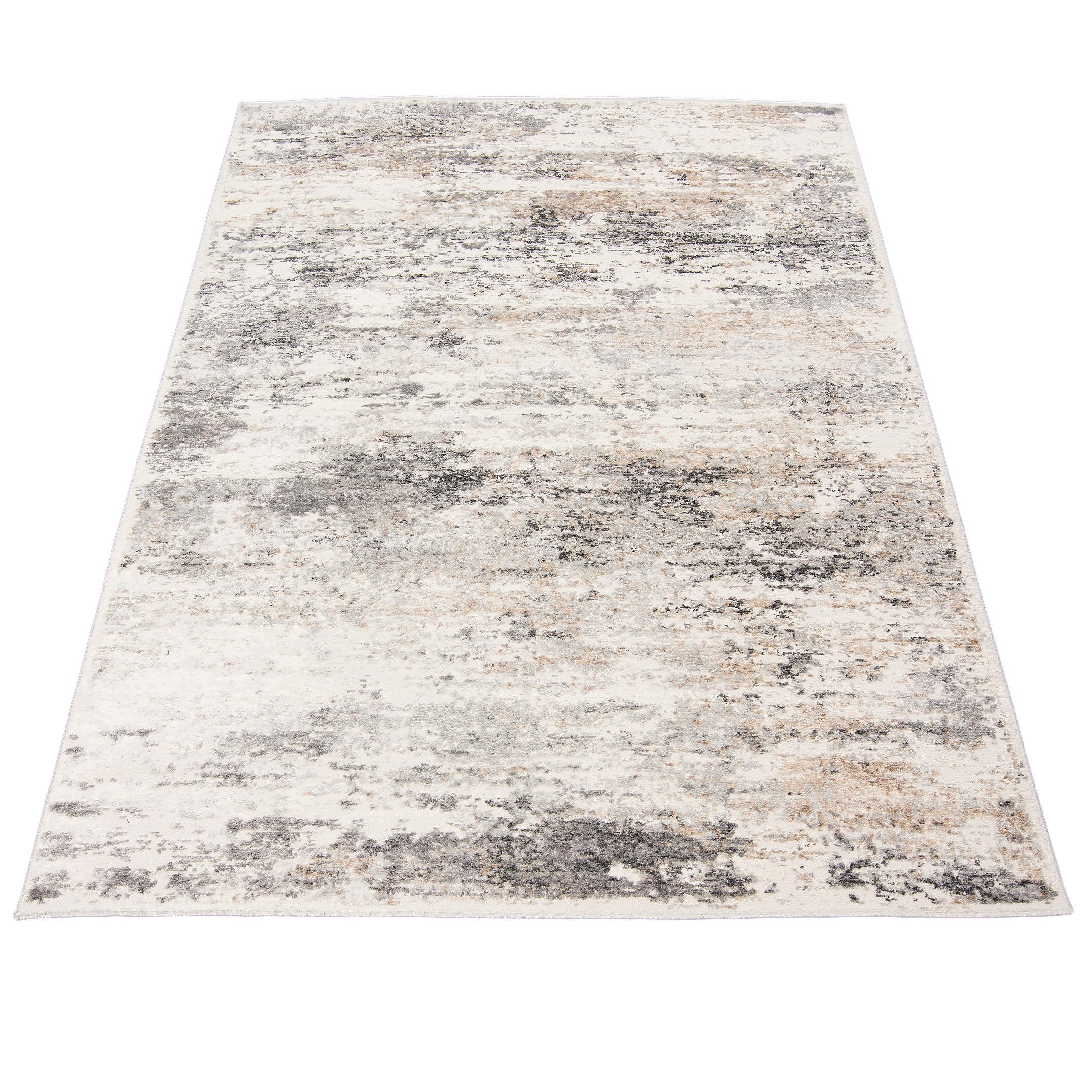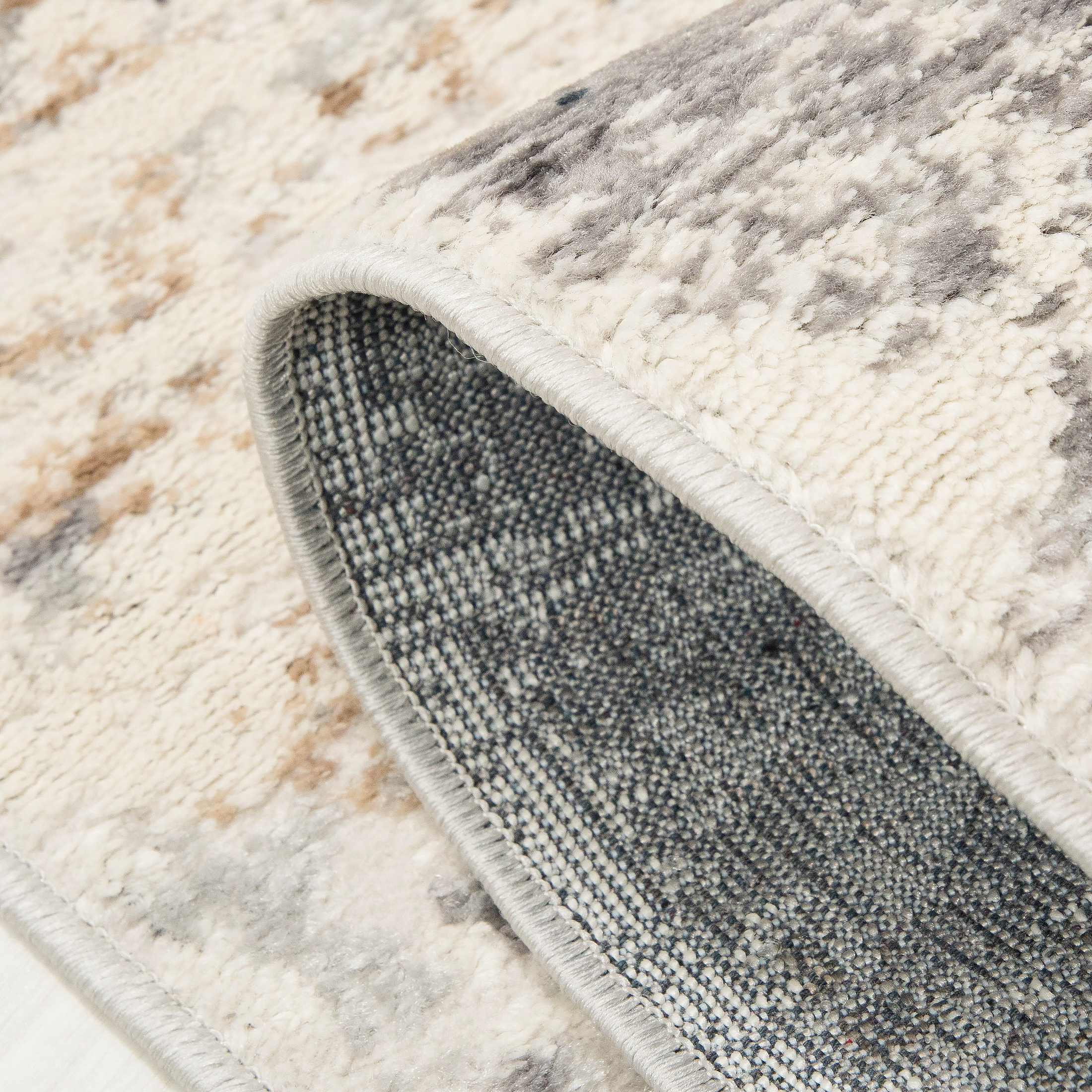 Dywan krótkowłosy wykonany z wysokiej jakości włókien syntetycznych. Utrzymany w kremowo-beżowej tonacji z subtelnym, przetartym wzorem w odcieniach jasnego brązu i piasku. Elegancki, trwały i łatwy w utrzymaniu czystości.
