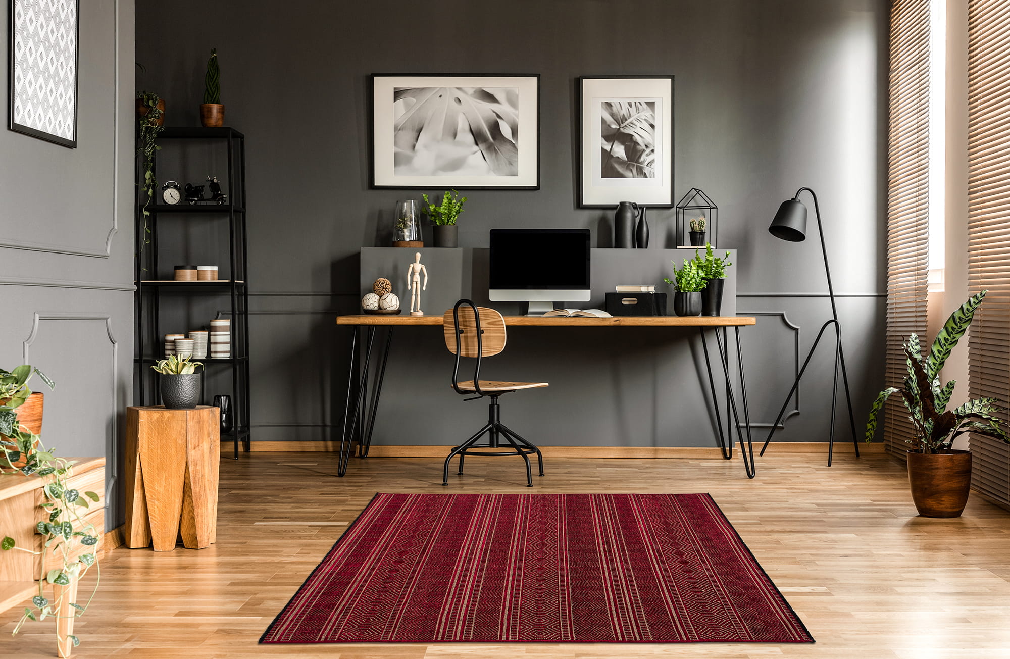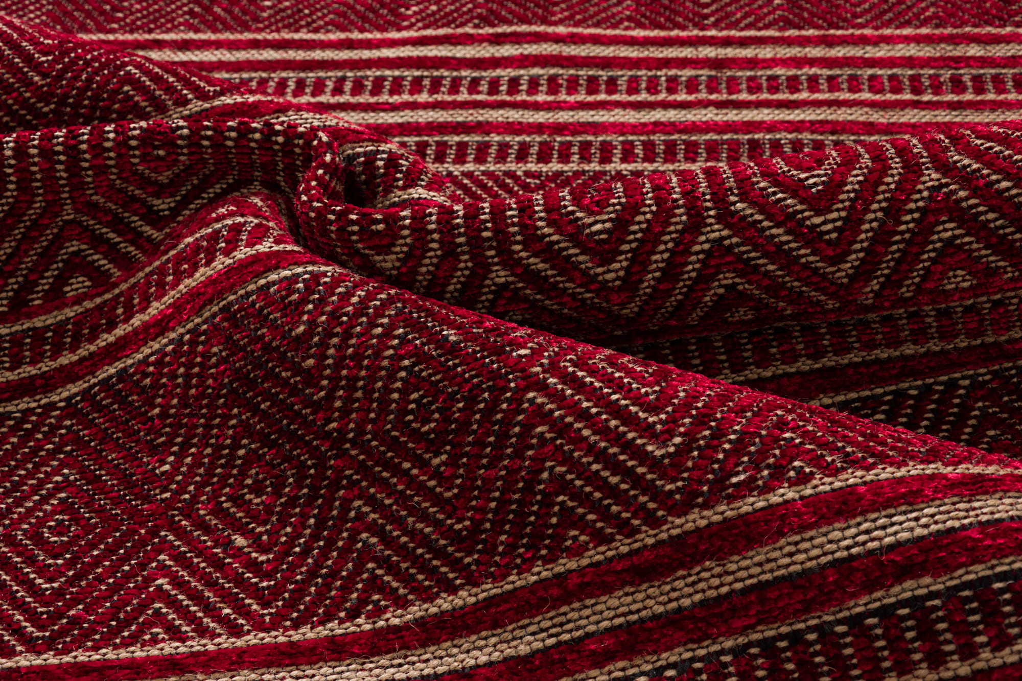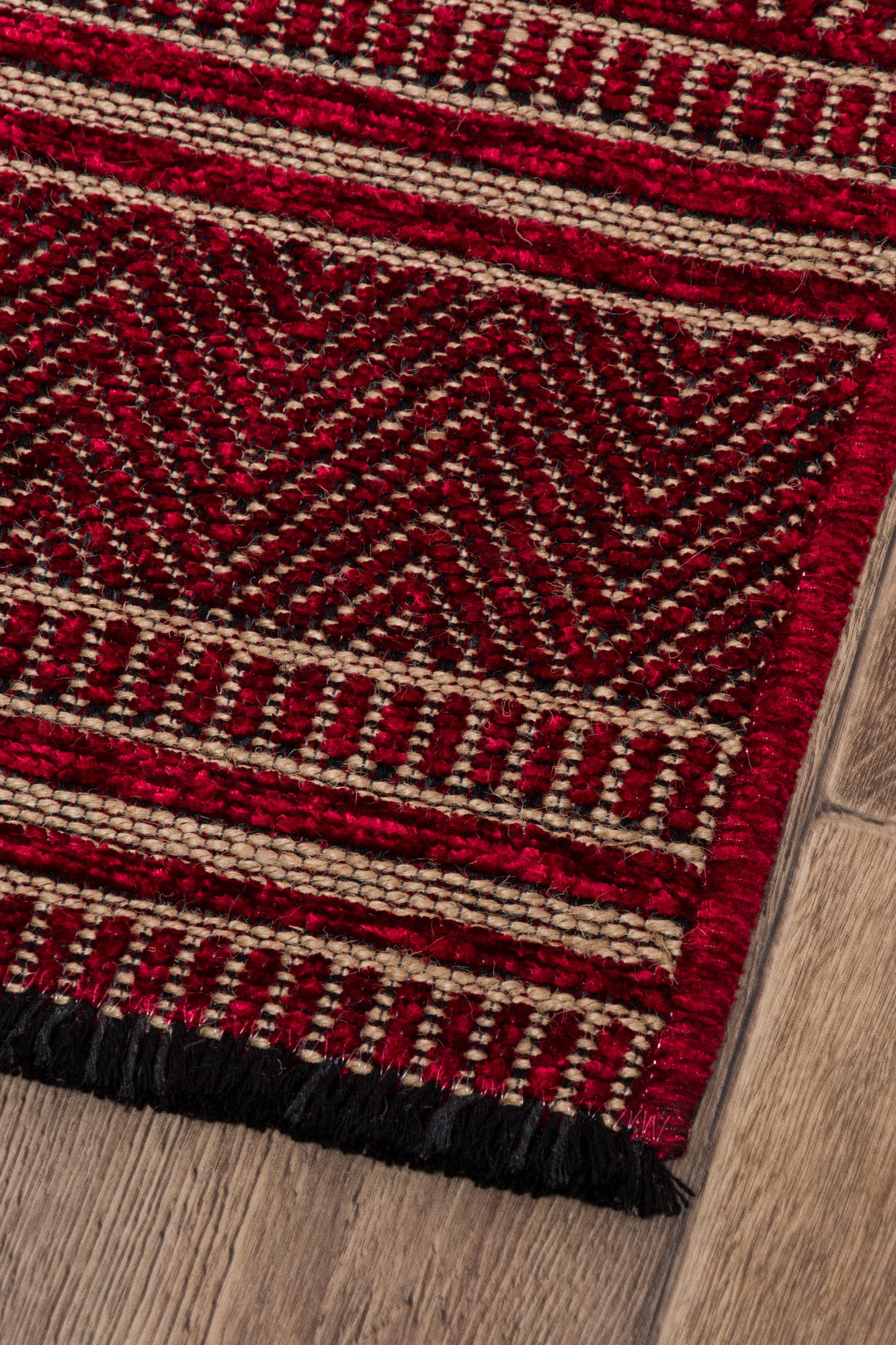 Czerwony dywan Saran, płaskotkany, to mieszanka naturalnej przędzy z poliestrową. Praktyczny i funkcjonalny, łatwy do czyszczenia.
