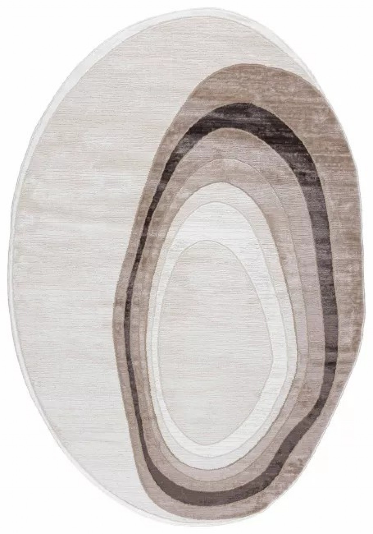 Dywan o abstrakcyjnym wzorze owali, w którym przeplatają się odcienie kremu, beżu i brązu, tworząc elegancki efekt 3d. To idealny wybór do wnętrz w stylu nowoczesnym, glamour lub minimalistycznym, gdzie doda ciepła i dekoracyjnej głębi.