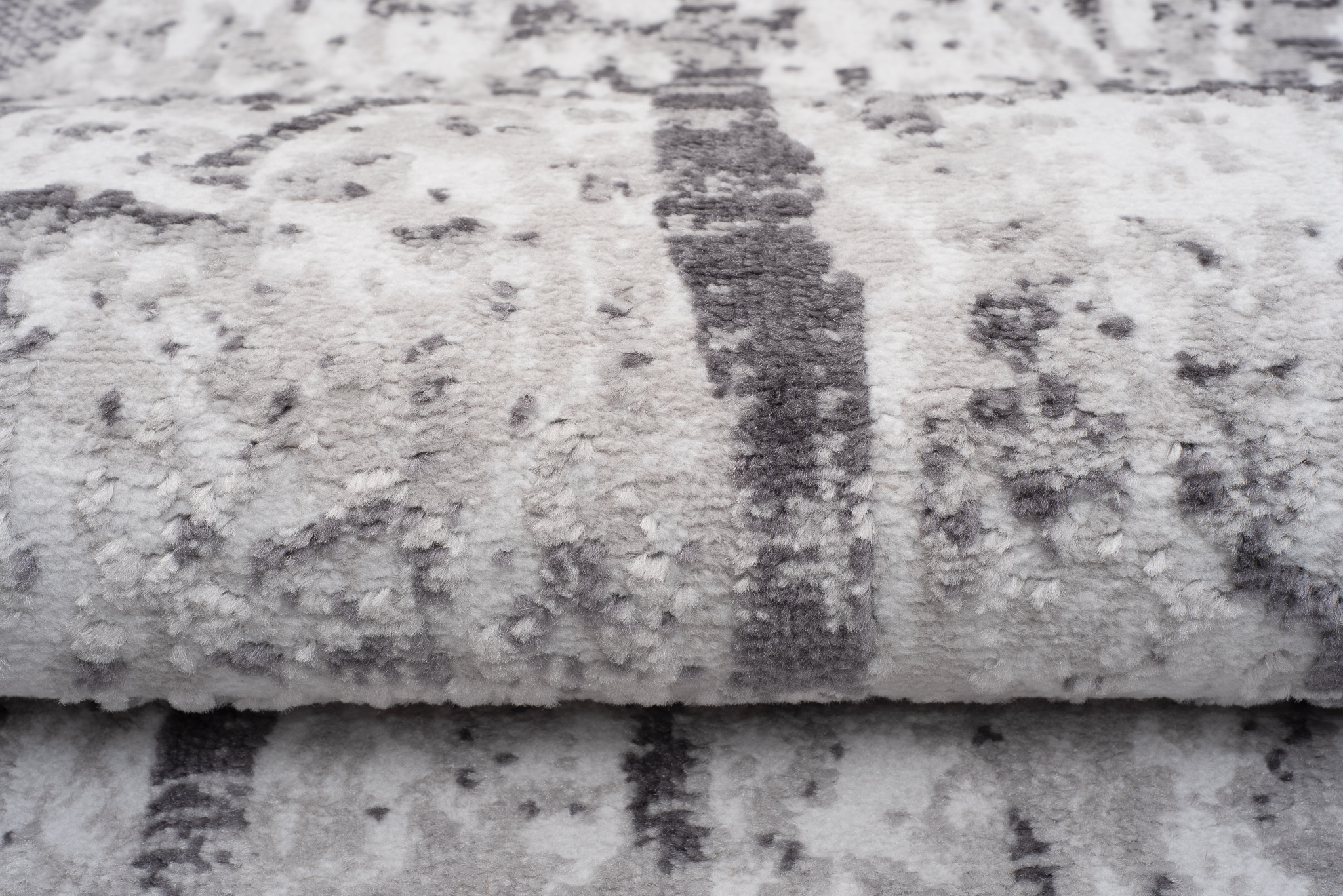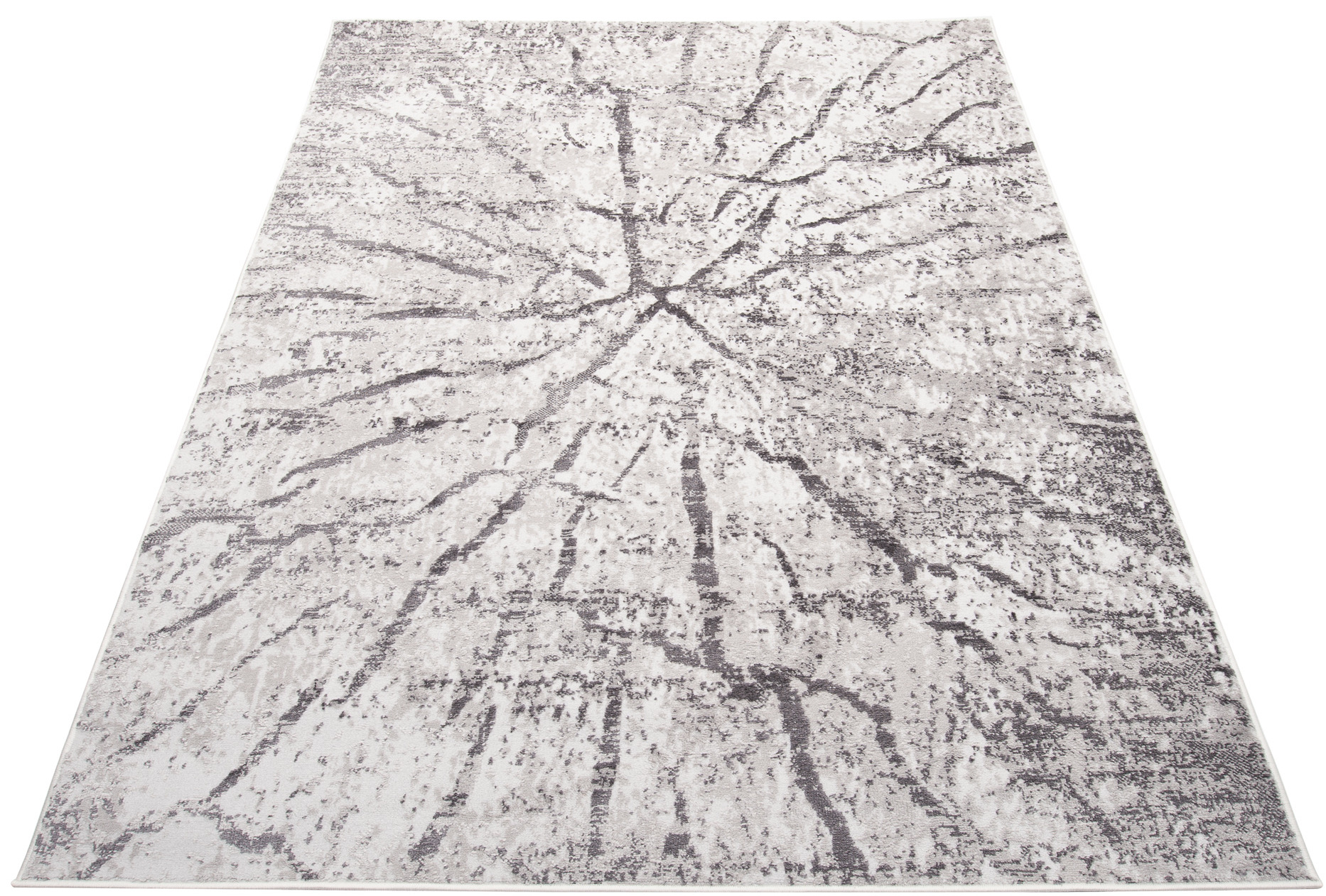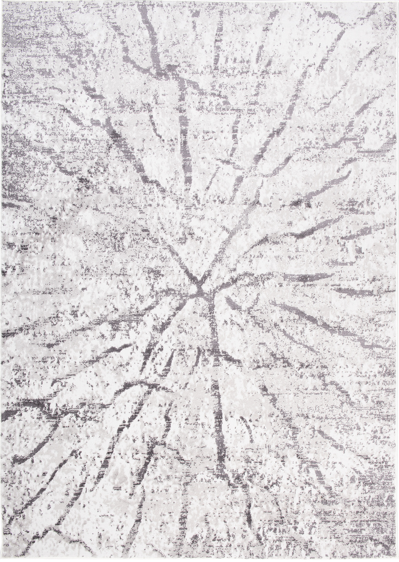 Nowoczesny dywan z wzorem inspirowanym przekrojem pnia drzewa, z efektem 3D. Dwupoziomowe runo podkreśla przestrzenną strukturę wzoru, a stonowana kolorystyka nadaje całości elegancki, lekko industrialny charakter.
