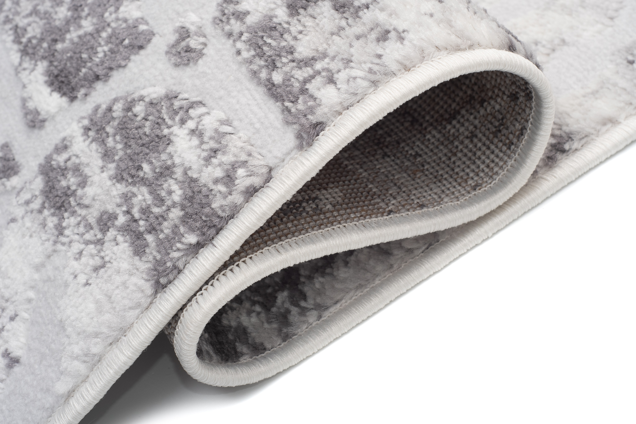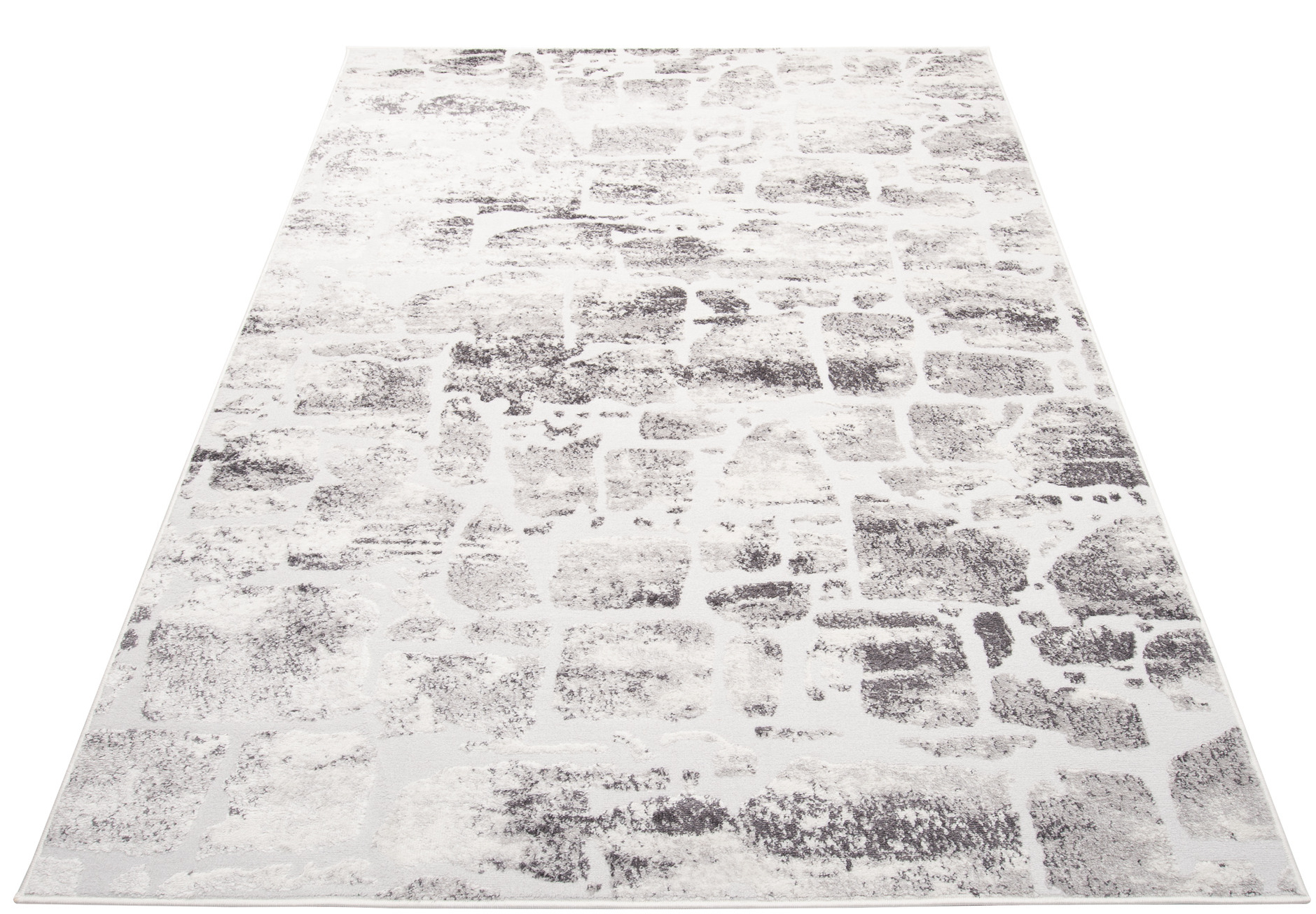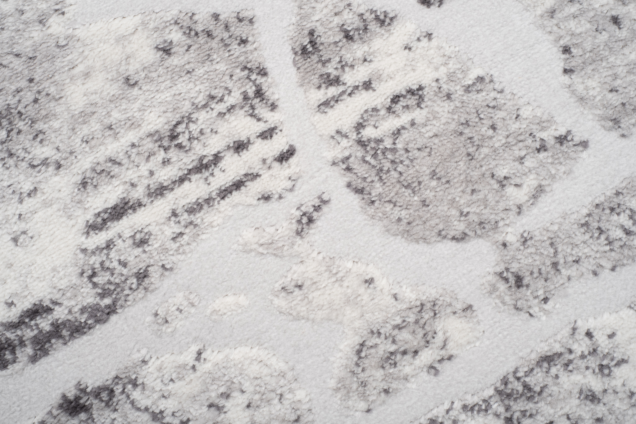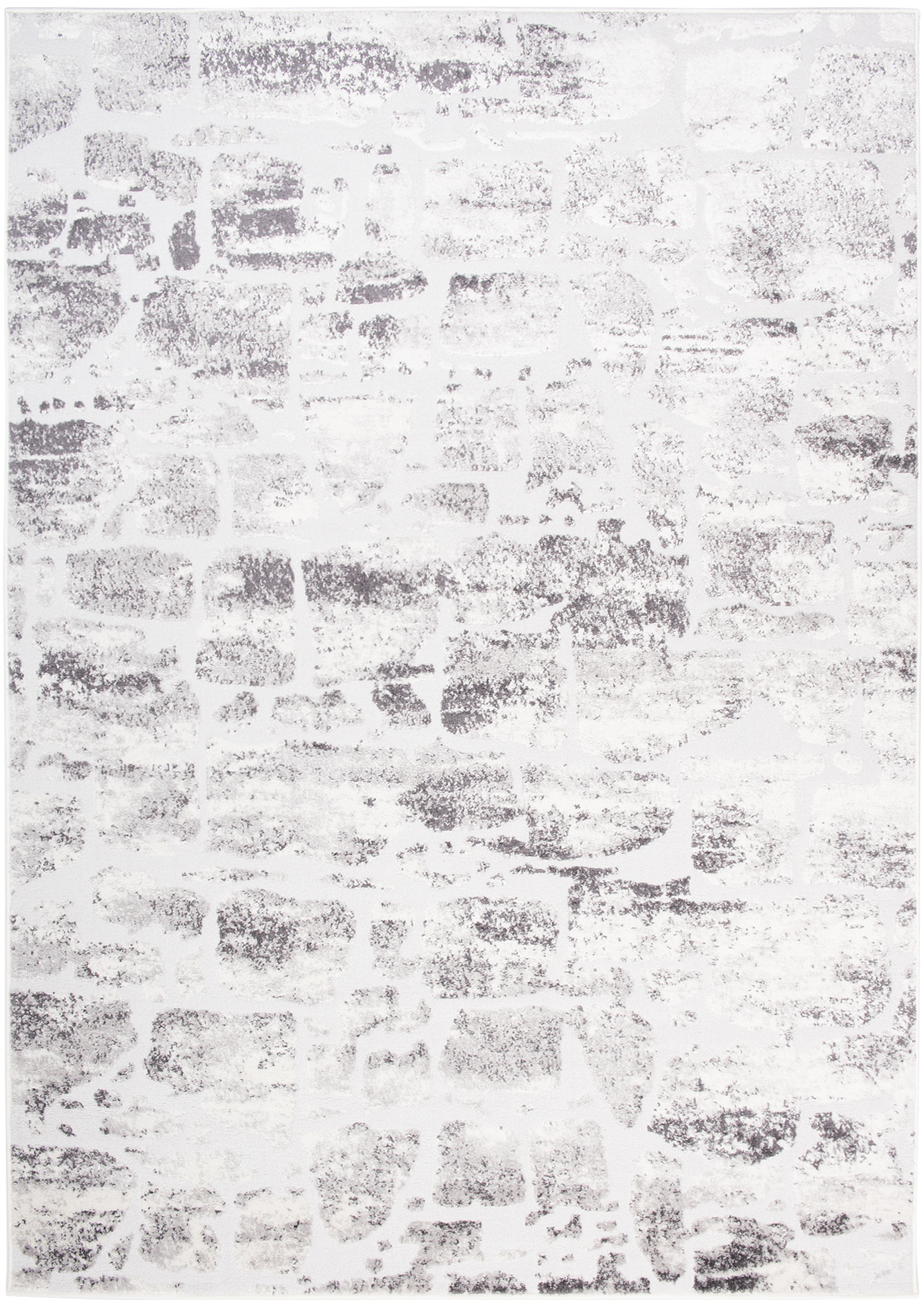 Jasny dywan w odcieniach bieli i szarości z delikatnym, przecieranym wzorem 3d przypominającym mur z cegły. Subtelna faktura i neutralna kolorystyka nadają mu nowoczesny, loftowy charakter. Dwupoziomowe runo podkreśla przestrzenną strukturę wzoru, a stonowana kolorystyka nadaje całości elegancki, lekko industrialny charakter.