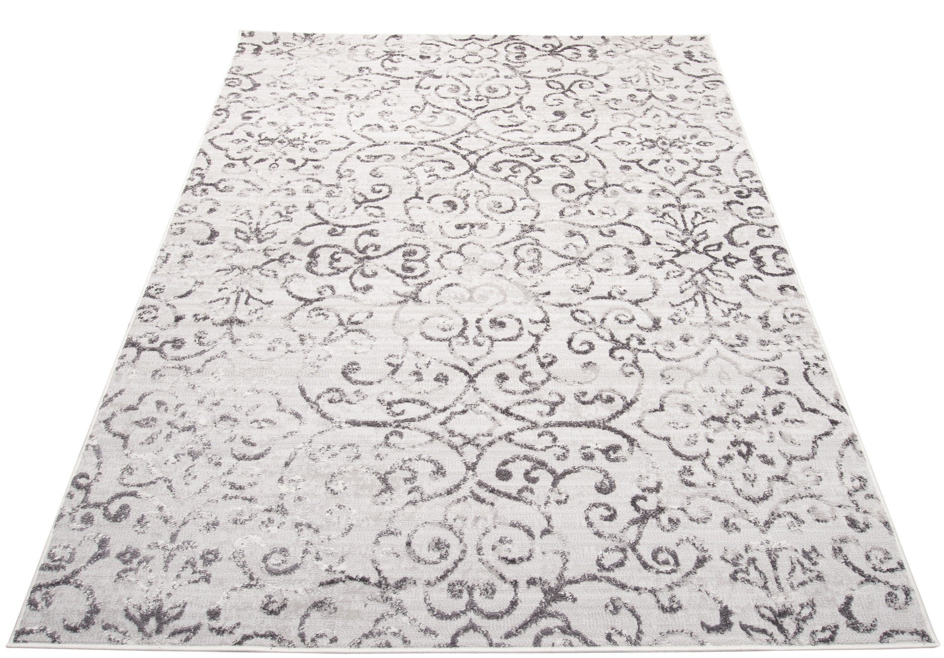 Nowoczesny dywan w stylu vintage z efektem przetarcia i roślinnym wzorem 3D. Dwupoziomowe runo podkreśla przestrzenną strukturę wzoru, a stonowana kolorystyka nadaje całości elegancki, lekko industrialny charakter.