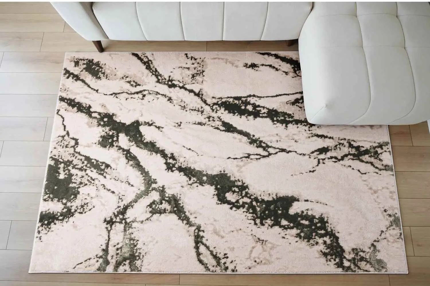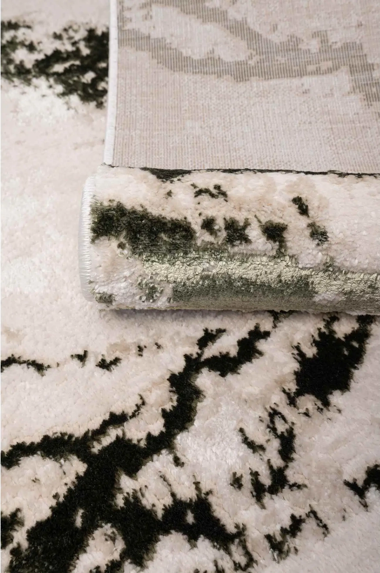 Miękki dywan z eleganckim, lekko połyskującym wzorem marmuru, idealny do nowoczesnych wnętrz. Przystosowany do ogrzewania podłogowego, zapewnia komfort i styl w każdym pomieszczeniu.