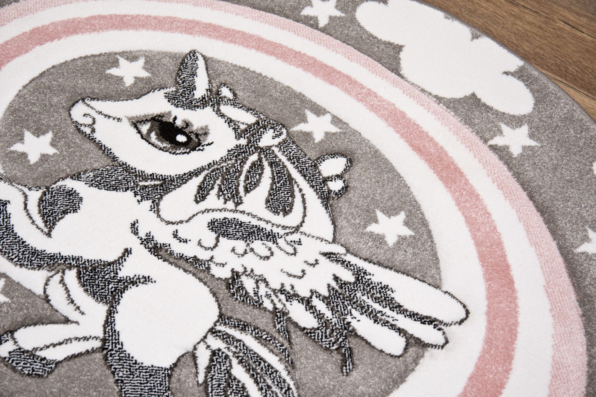 Motyw pięknego jednorożca z tęczą na szarym tle ucieszy każdą miłośniczkę zwierząt. Trójwymiarowy wzór osiągnięty przez wycinany relief sprawią, że te dywaniki będą przyjemną i wdzięczną dekoracją dziecięcego pokoju.