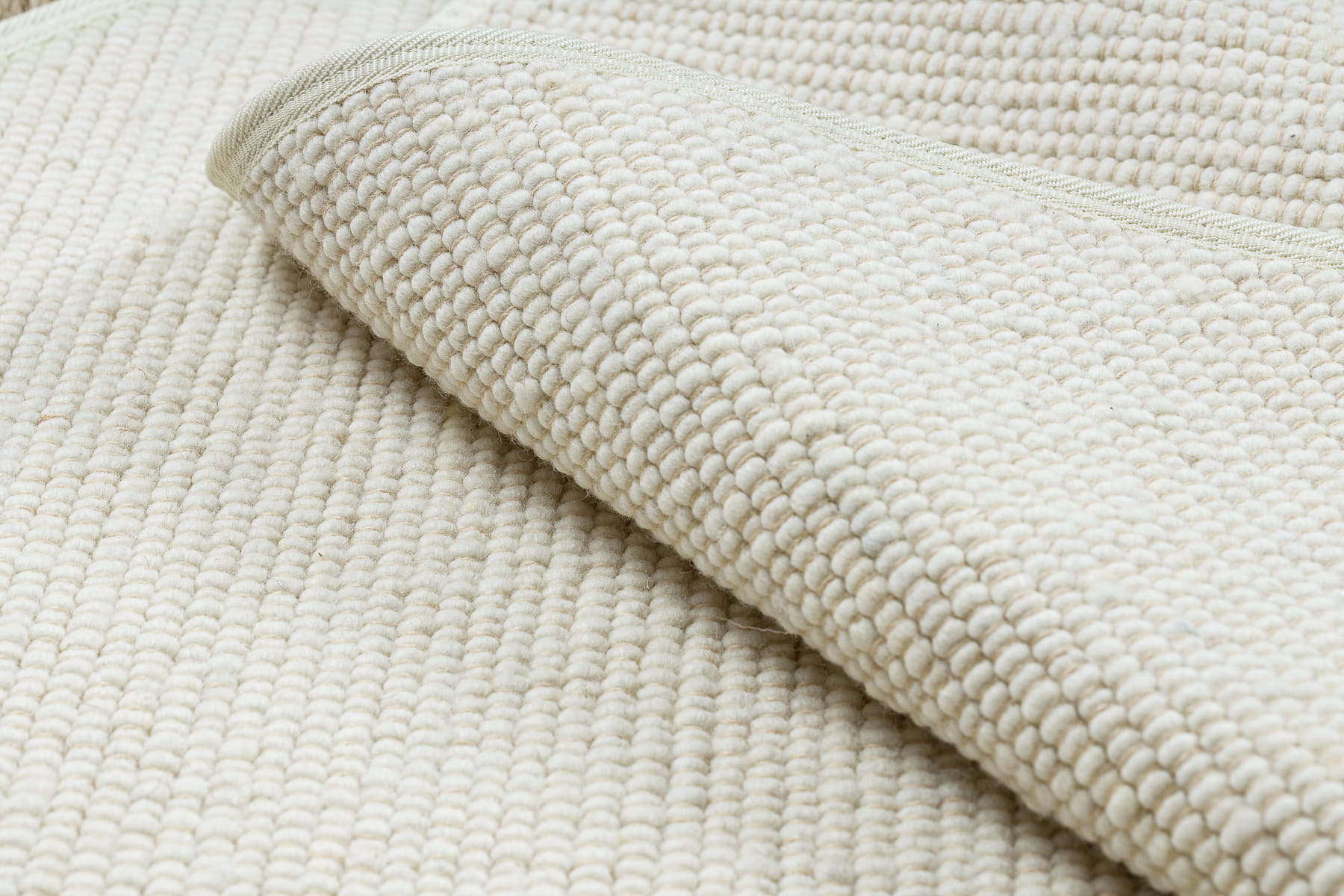Kremowy dywan Nepal wykonany ręcznie z dużą precyzją tkania z wysokiej jakości wełny nowozelandzkiej, jest trwały i funkcjonalny. Jest odporny na ścieranie, nie będzie się spłaszczać podczas chodzenia. Dwustronne wykorzystanie dywanu przedłuży jego użytkowanie.