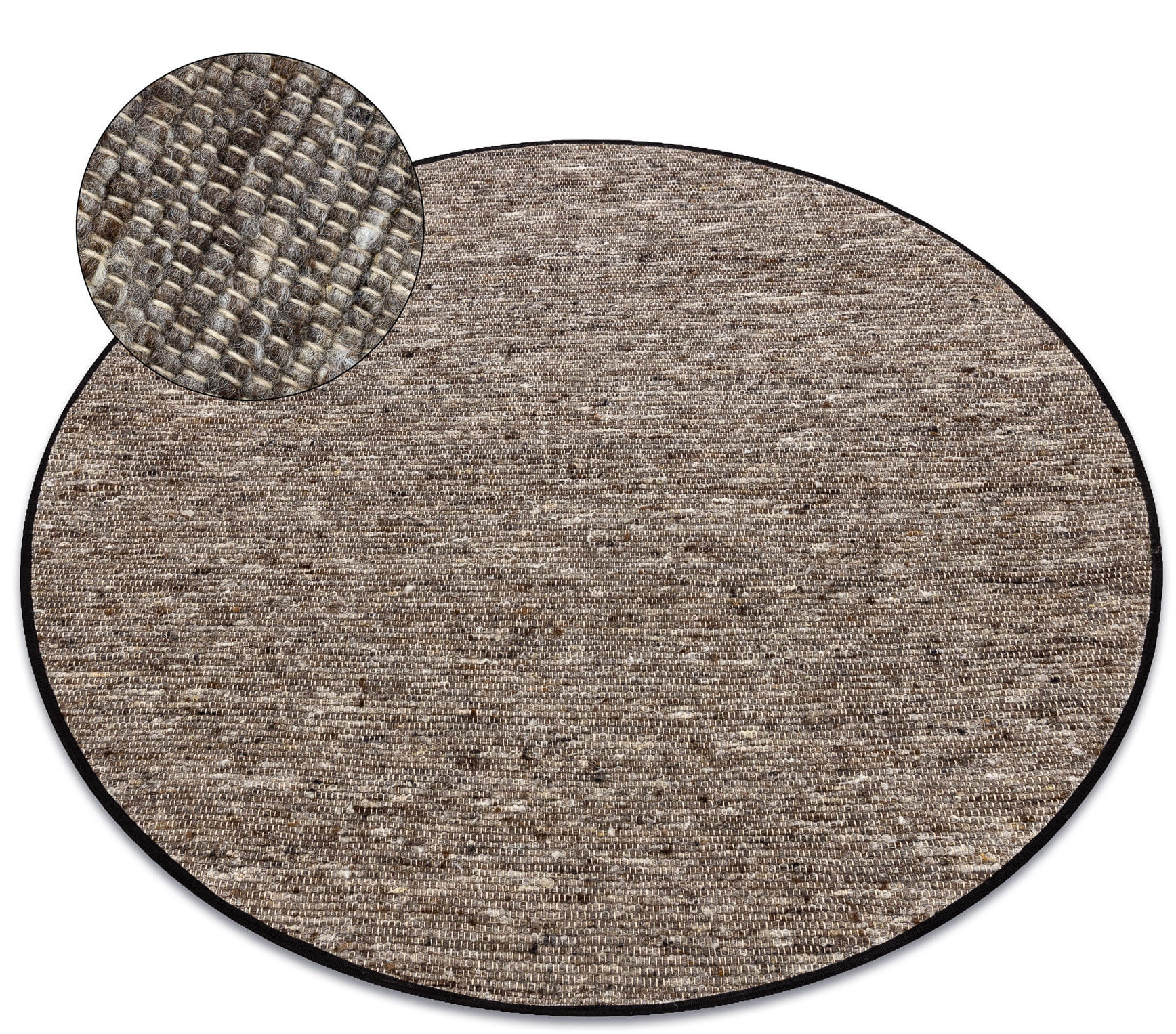 Dywan okrągły wełniany dwustronny Nepal naturalny ciemno-szary wełna