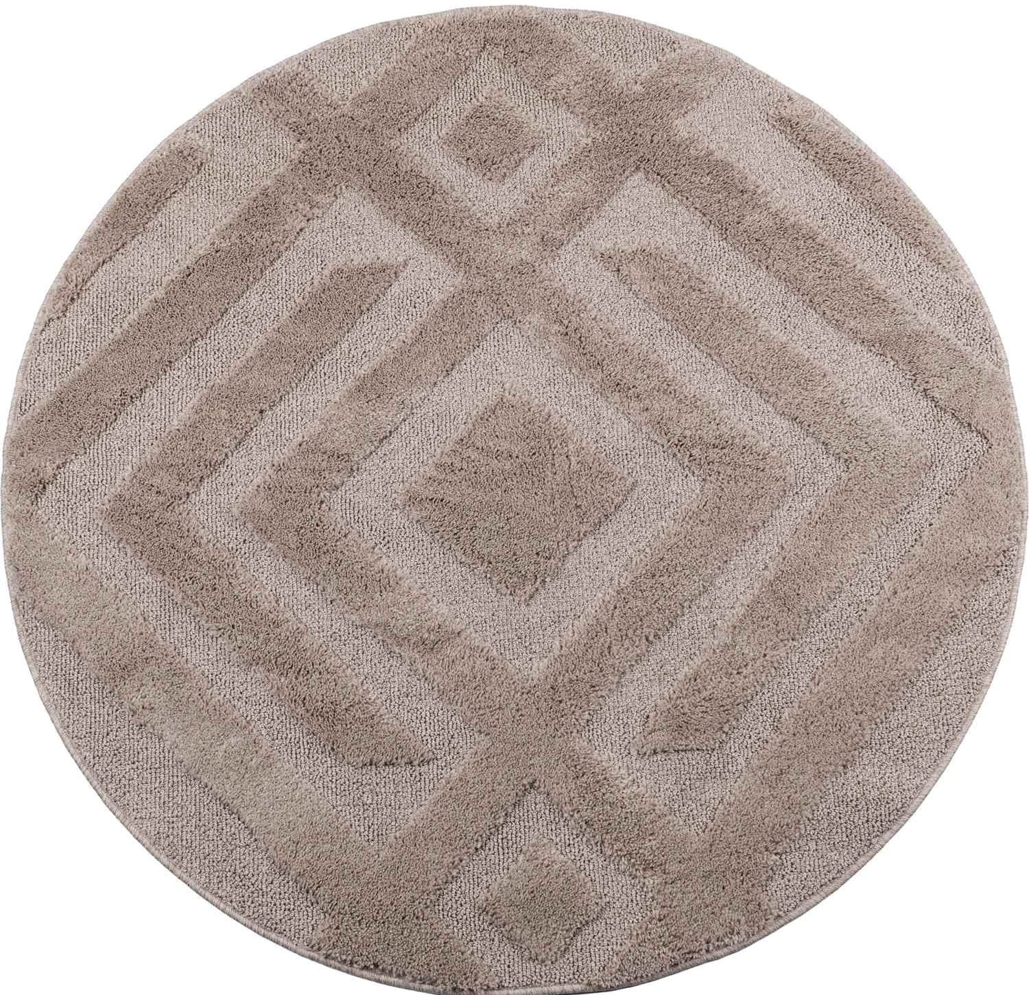 Okrągły dywan shaggy z geometrycznym wzorem 3d Pisa Romby koło beżowy