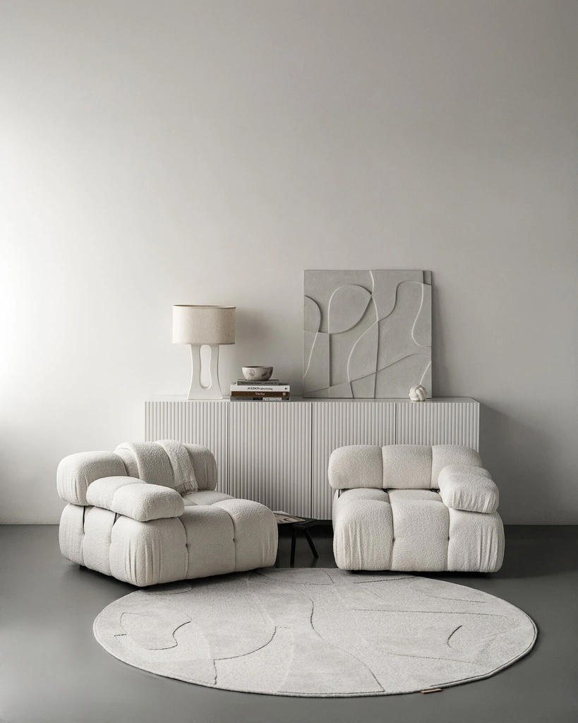 Kolekcja dywanów Ladnini Morphic to propozycja ekskluzywnych dywanów wykonanych z wysokiej jakości niebarwionej wełny brytyjskiej. Zastosowano w nich połączenie runa ciętego oraz pętelki (na dwóch płaszczyznach), co dodaje walorów estetycznych i zapewnia niebanalny efekt 3D.
