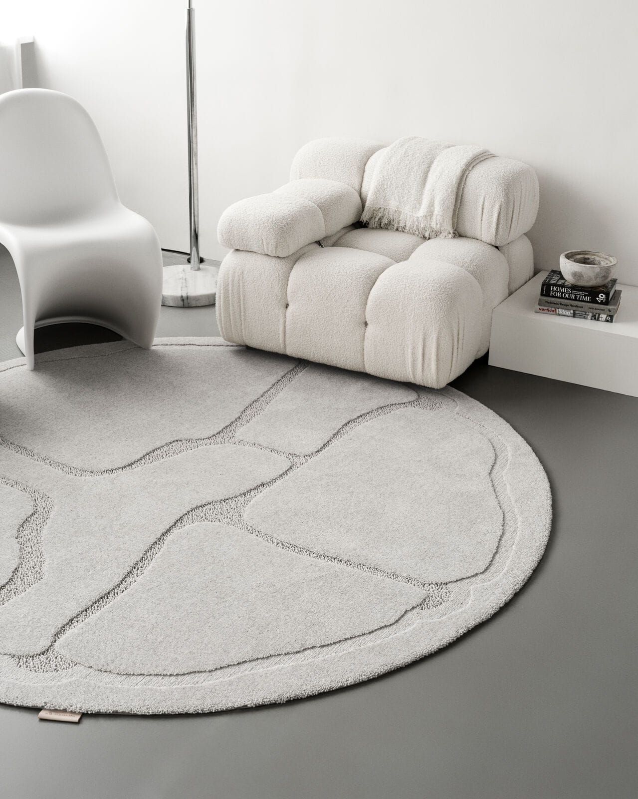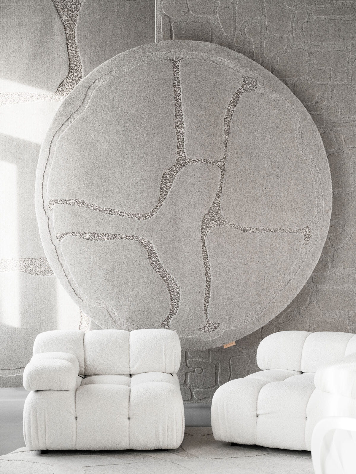Dywan okrągły wełniany Agnella Ladnini Morphic Organica jasno szary