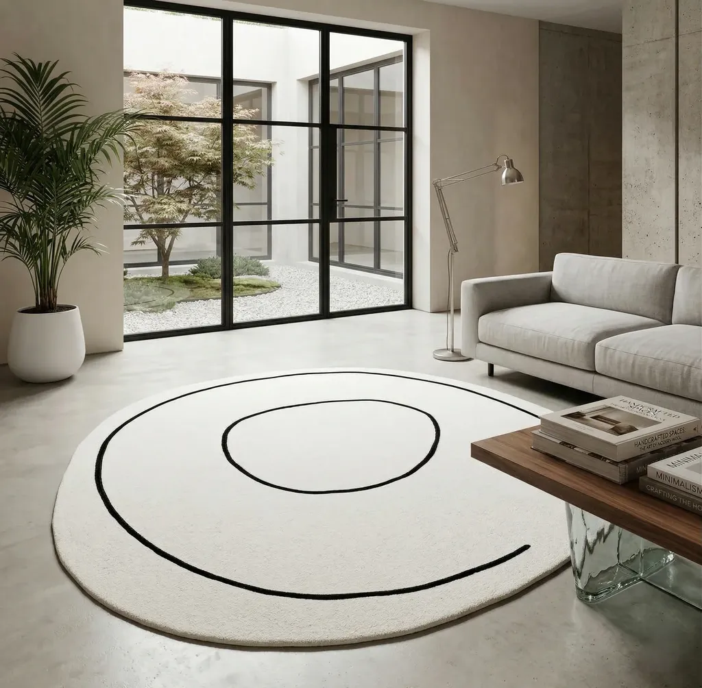 Dywan okrągły wełniany Carpet Decor Handmade Loop ivory