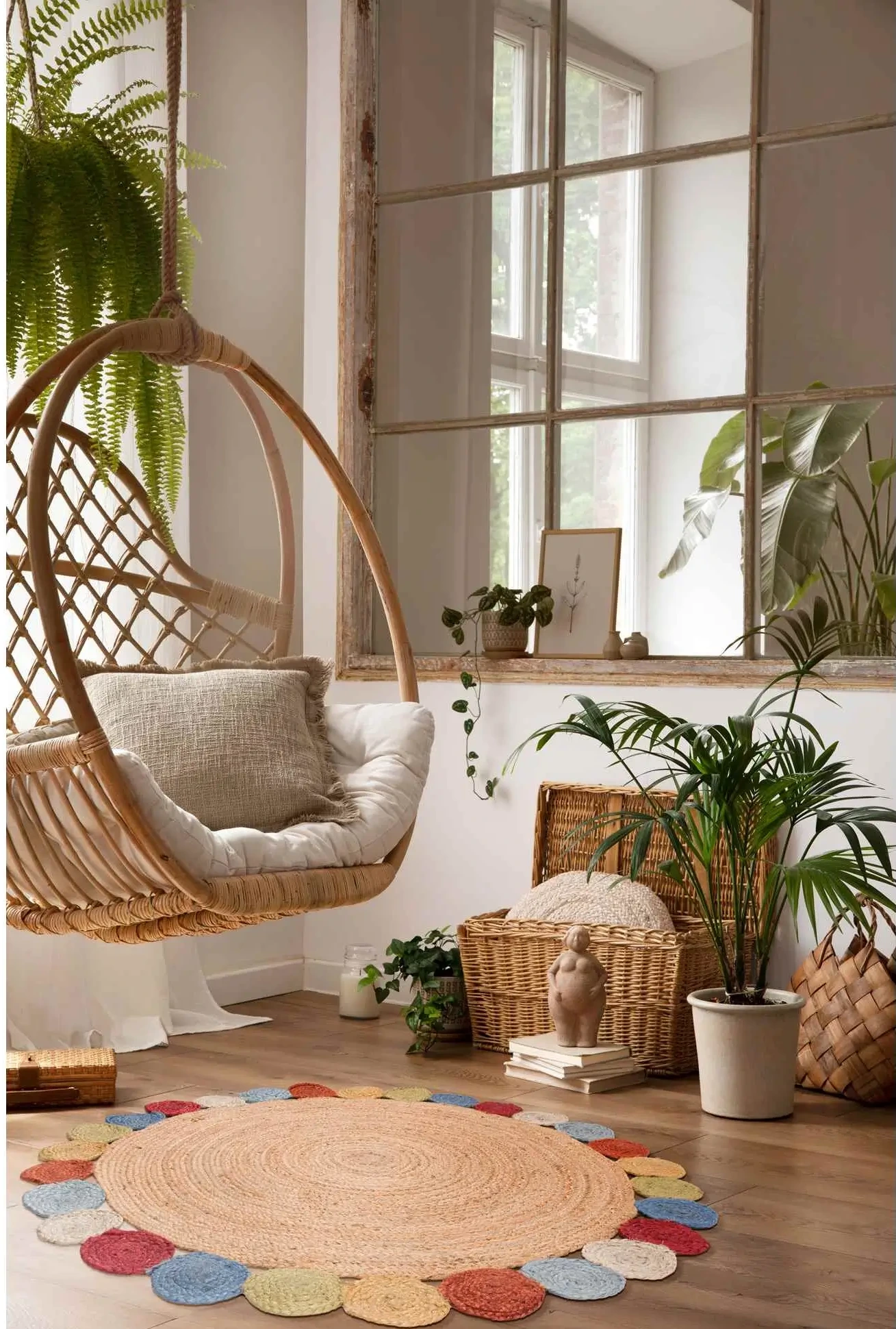 Dywan pleciony z naturalnej juty to wytrzymałe i ekologiczne rozwiązanie do użytku domowego i na taras i balkon. Odporny na ścieranie, dobrze izoluje od chłodu i zapewnia cyrkulację powietrza. Jego rustykalna struktura podkreśla autentyczny charakter wnętrza. Doskonale wpasuje się do wnętrz w stylu eko, boho, jungle.