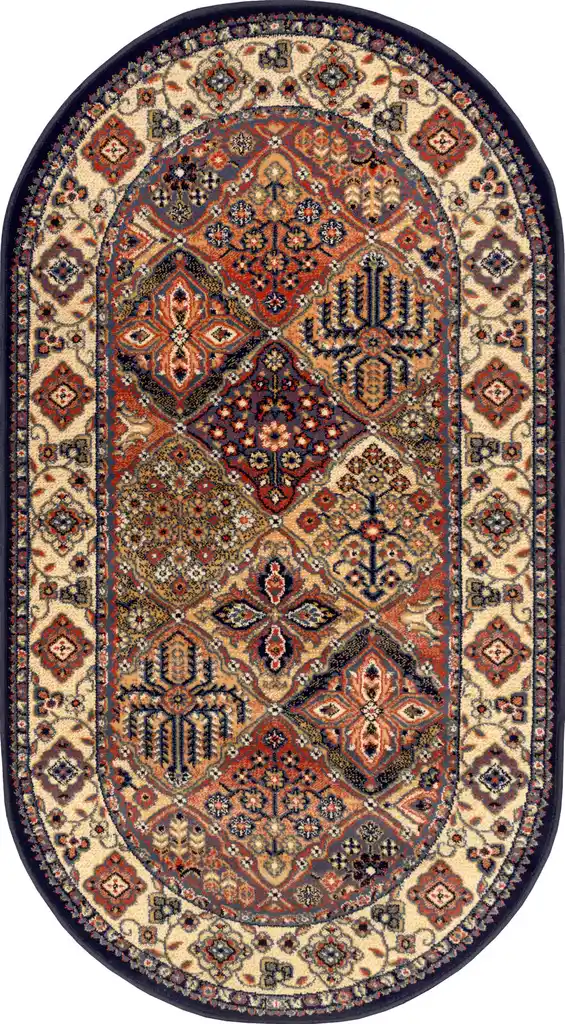 Dywan FD Standard Bergenia owal charakteryzuje orientalny wzór, który podkreśla jego wytworność. Wykonany z uszlachetnionej przędzy polipropylenowej Heat Set, jest trwały, odporny na codzienne użytkowanie i łatwy w utrzymaniu czystości.