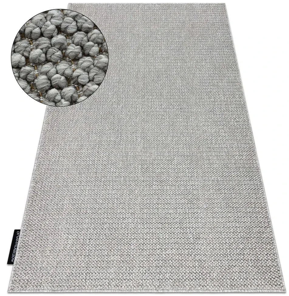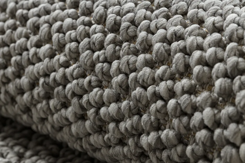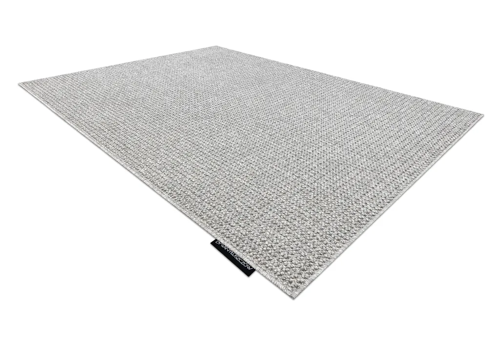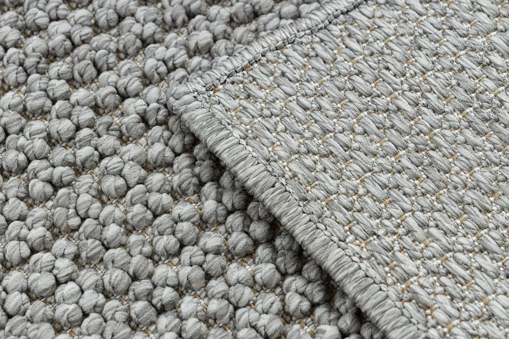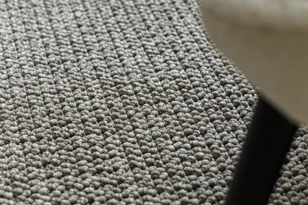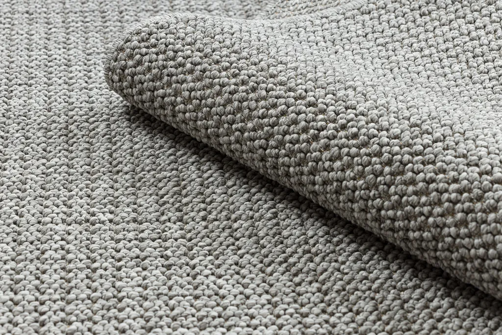 Stylowy, płaskotkany dywan w jasnych odcieniach szarości, z grubym, pętelkowym splotem runa. Jest łatwy w czyszczeniu i wyjątkowo praktyczny w codziennym użytkowaniu.