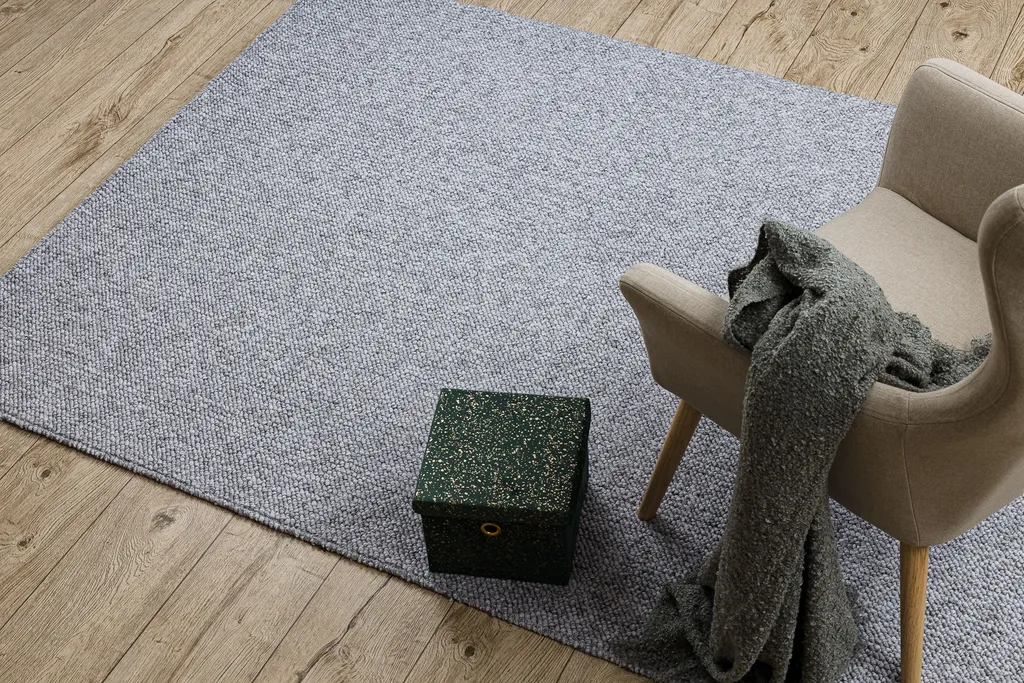 Stylowy, płaskotkany dywan w odcieniach szarości. Jego niskie runo sprawia, że jest łatwy w czyszczeniu i wyjątkowo praktyczny w codziennym użytkowaniu.