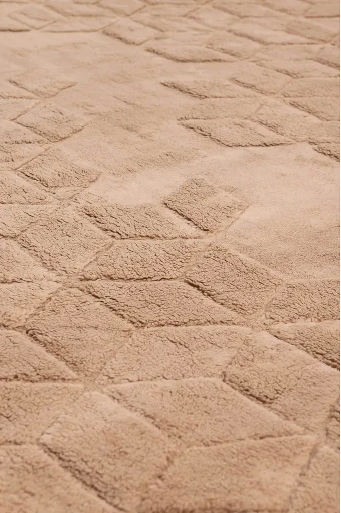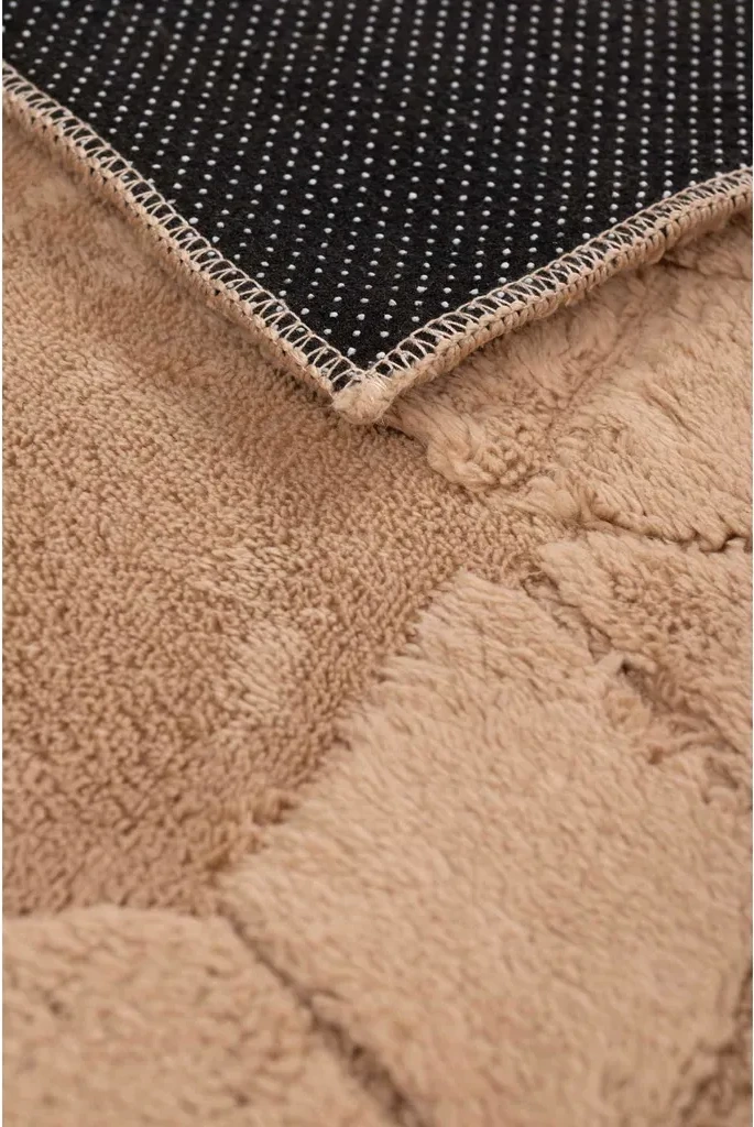 Dywan z miękkim i puszystym runem. Trójwymiarowy, geometryczny wzór nadaje mu głębi i nowoczesny wygląd. Dzięki antypoślizgowym wypustkom na spodzie dywan dobrze trzyma się podłogi, gwarantując wygodę i bezpieczeństwo w codziennym użytkowaniu.